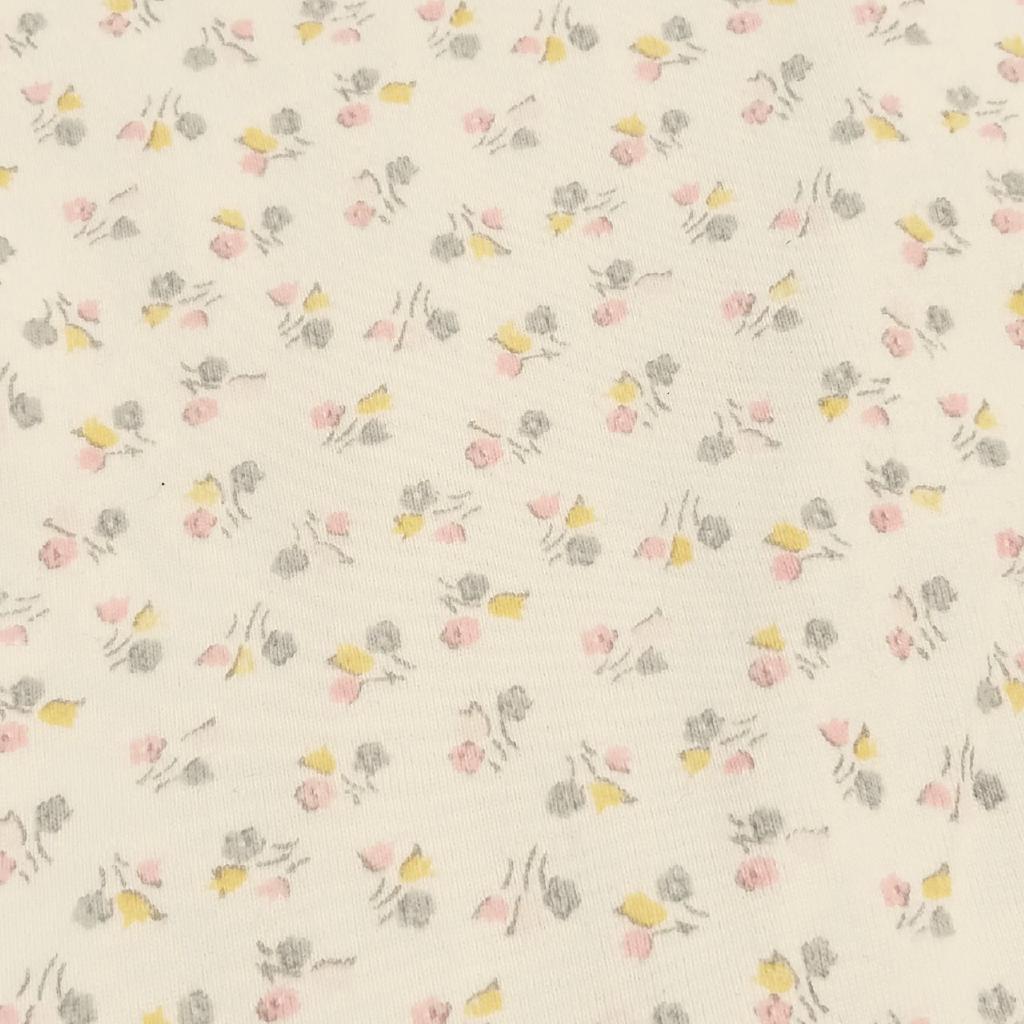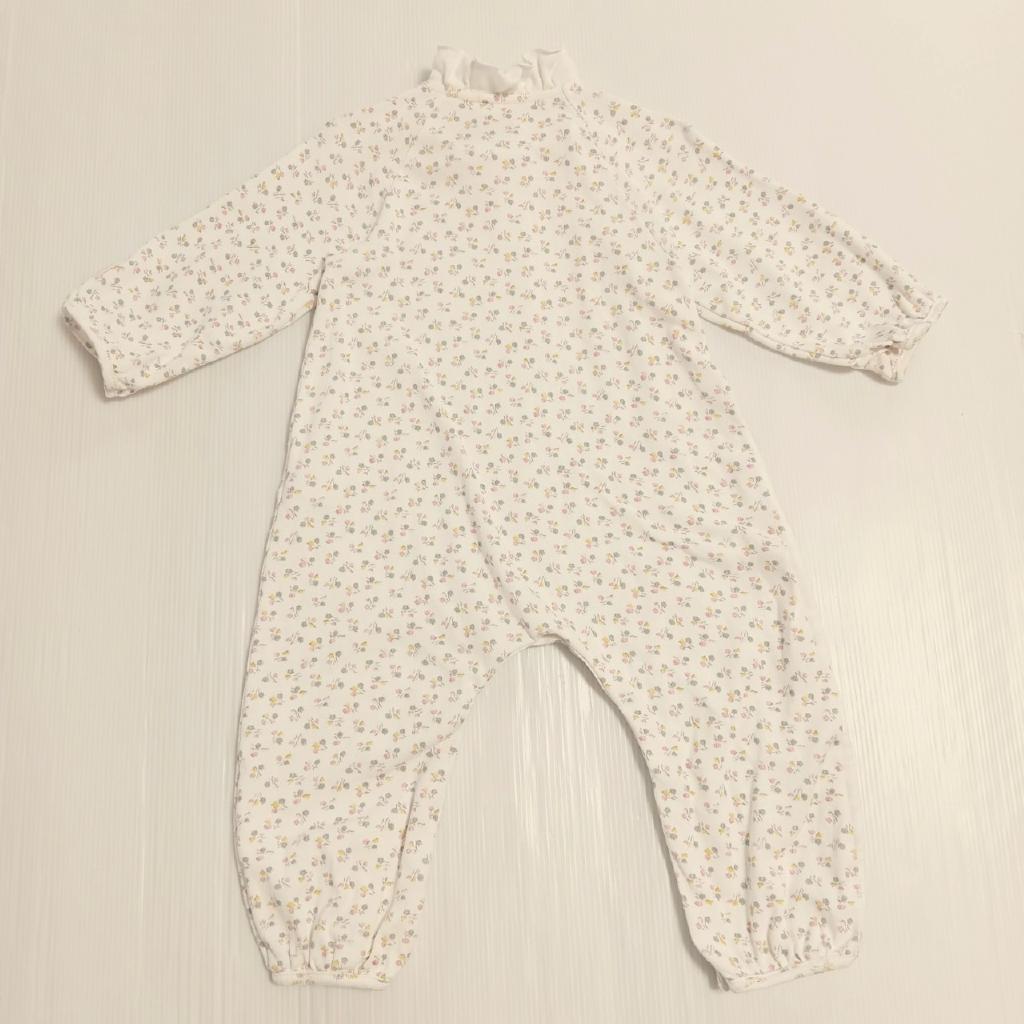 【素材】写真参照 【実寸(cm)】12m/74 着丈54.5 身幅24 股下21 【色・デザイン】白 花柄 衿ぐりフリル スナップボタン(股下まで全開) 左袖下ロゴタグ 【状態】毛羽立ち少々 |