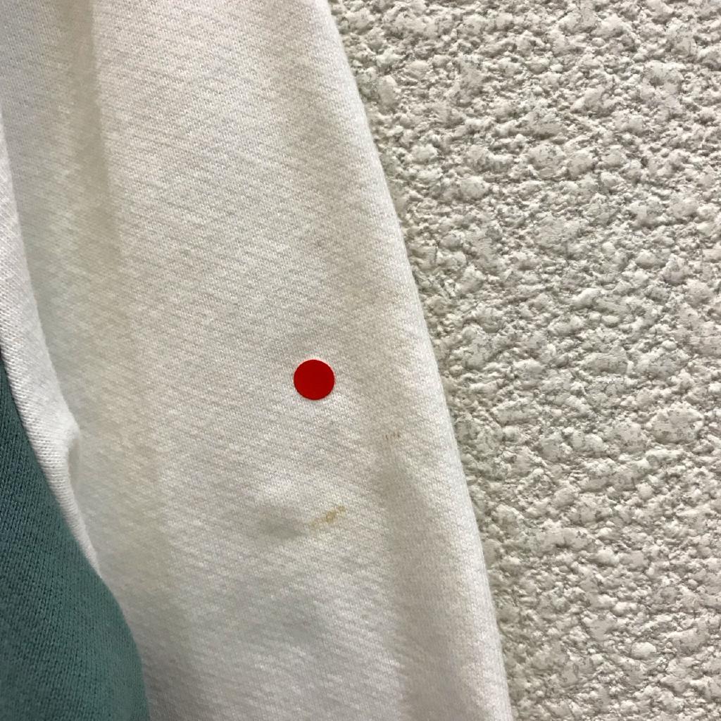 | コメント | 【サイズ表記】120ans/152㎝【実寸】身幅41 総丈54【特徴】オフホワイト×モスグリーン トレーナー地 身頃のみカットソー地の裏地付(綿) ロゴワッペン 前スナップ 前ポケット【状態】色あせ、毛羽立ち少々 右袖シミ少々 |
