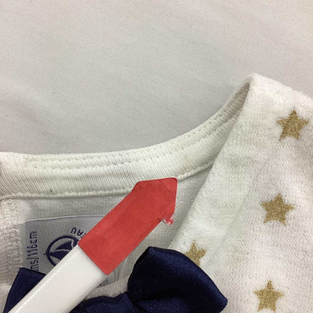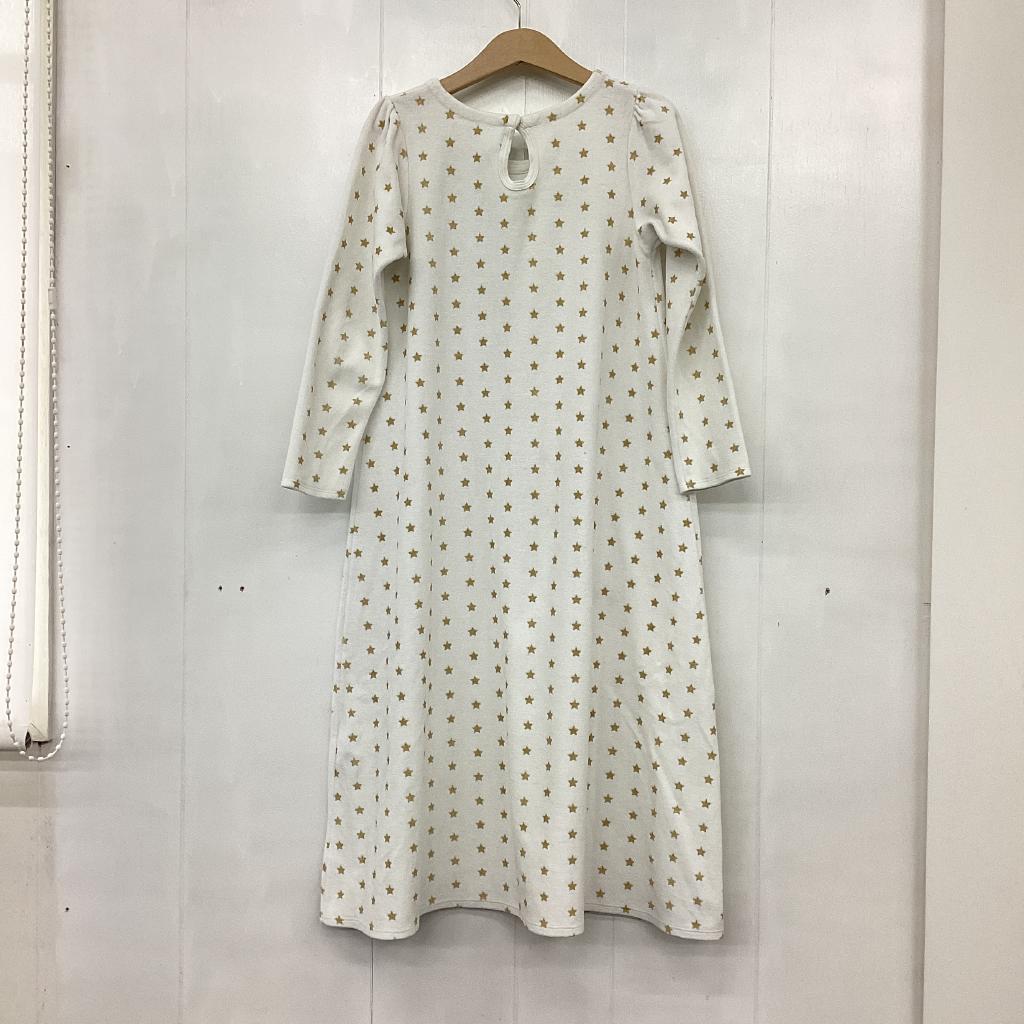 【サイズ】110cm 【実寸(㎝)】身幅35 袖丈39.5 肩幅25 丈80 【素材(%)】※タグ参照 【裏地(%)】なし 【色】ホワイト系 【デザイン】サイズ表記:6(116) 白地にゴールドのラメ星柄 襟ぐりサテンリボン縫い付け 胸元切り替え 左横裾タグ縫い付け 背中ドットボタン 【状態】使用感あり(中) 毛羽立ちあり(小) 後ろ薄いシミあり 襟ぐりシミあり |