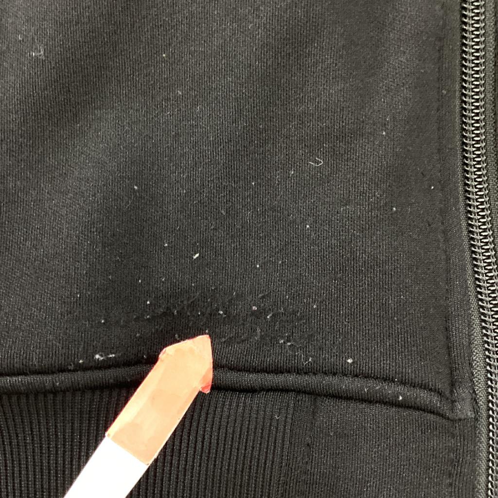 【サイズ】150cm 【実寸(㎝)】身幅44.5 袖丈53.5 肩幅39 丈57 【素材(%)】※タグ参照 【裏地(%)】なし 【色】ブラック系 【デザイン】サイズ表記:M 左胸ファスナーポケット 前ファスナー 刺しゅうあり ポケットあり 【状態】使用感あり(中) スレによる毛羽立ちあり(中) 毛玉あり(小) 引っ掛け多数あり |