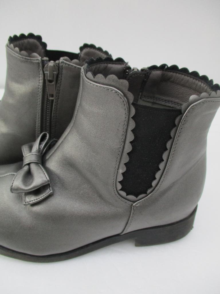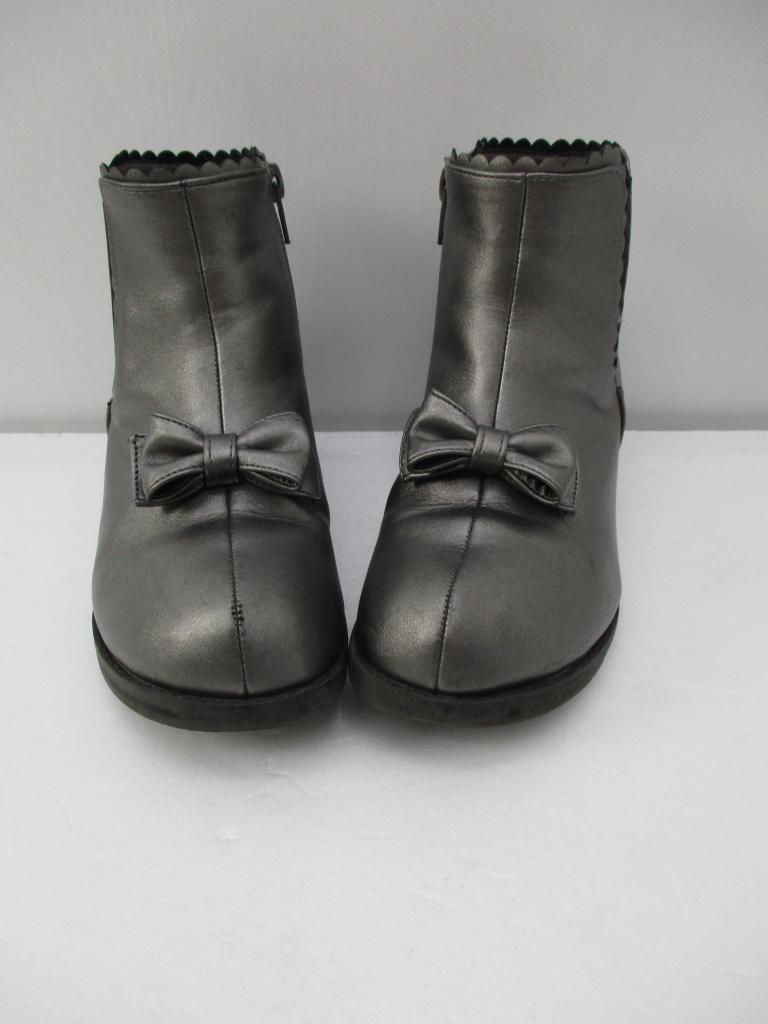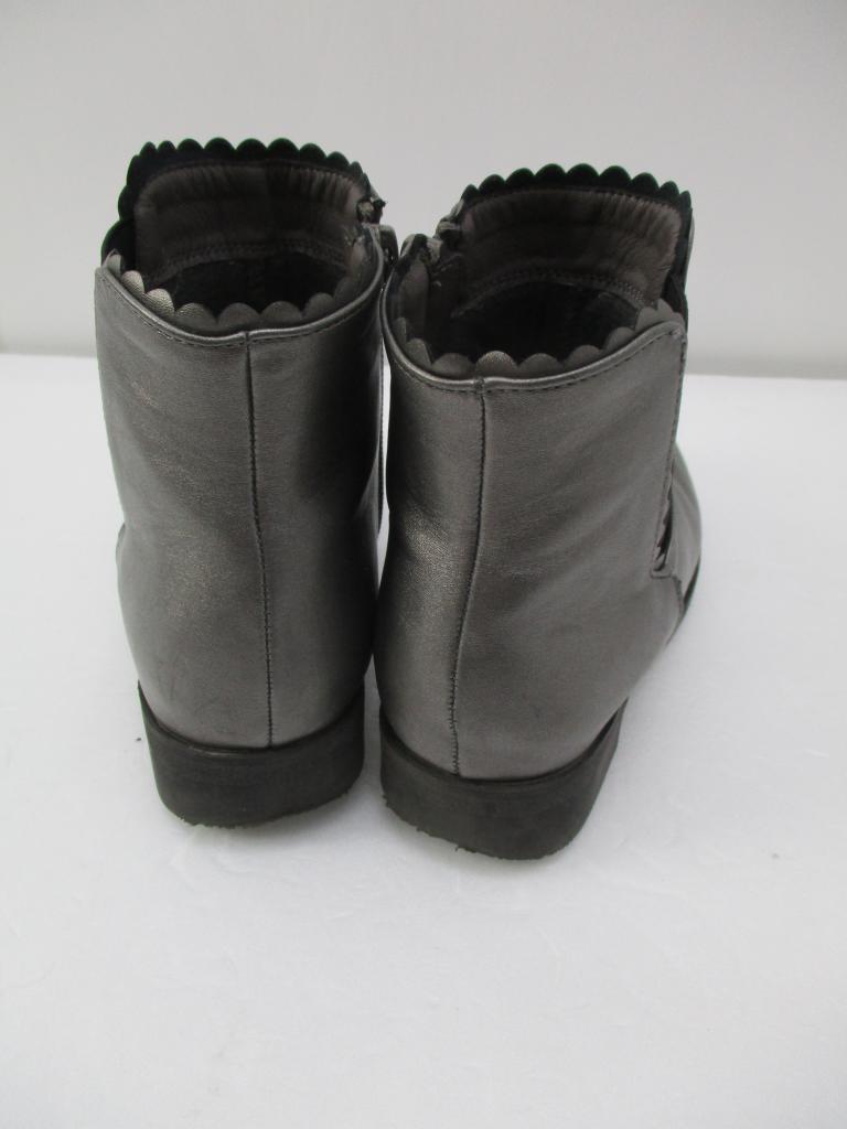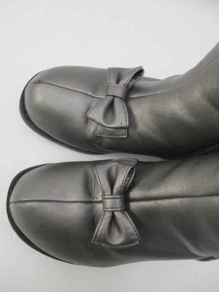 ★ハイカットブーツ♪ 【材質表示なし】 【実寸】靴裏長さ22,0㎝ 甲幅8㎝ 踵底厚さ3,5㎝ 高さ12㎝ 【色、柄】グレー 【デザイン、特徴】内側ファスナー開閉。前リボン付き 【状態】踵にすり減りあります 【※クリックポスト発送不可】箱なし |