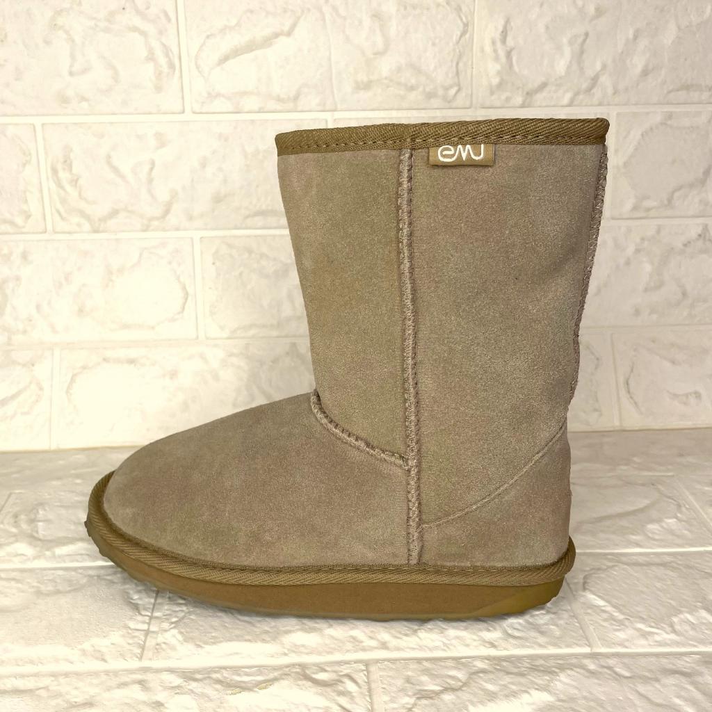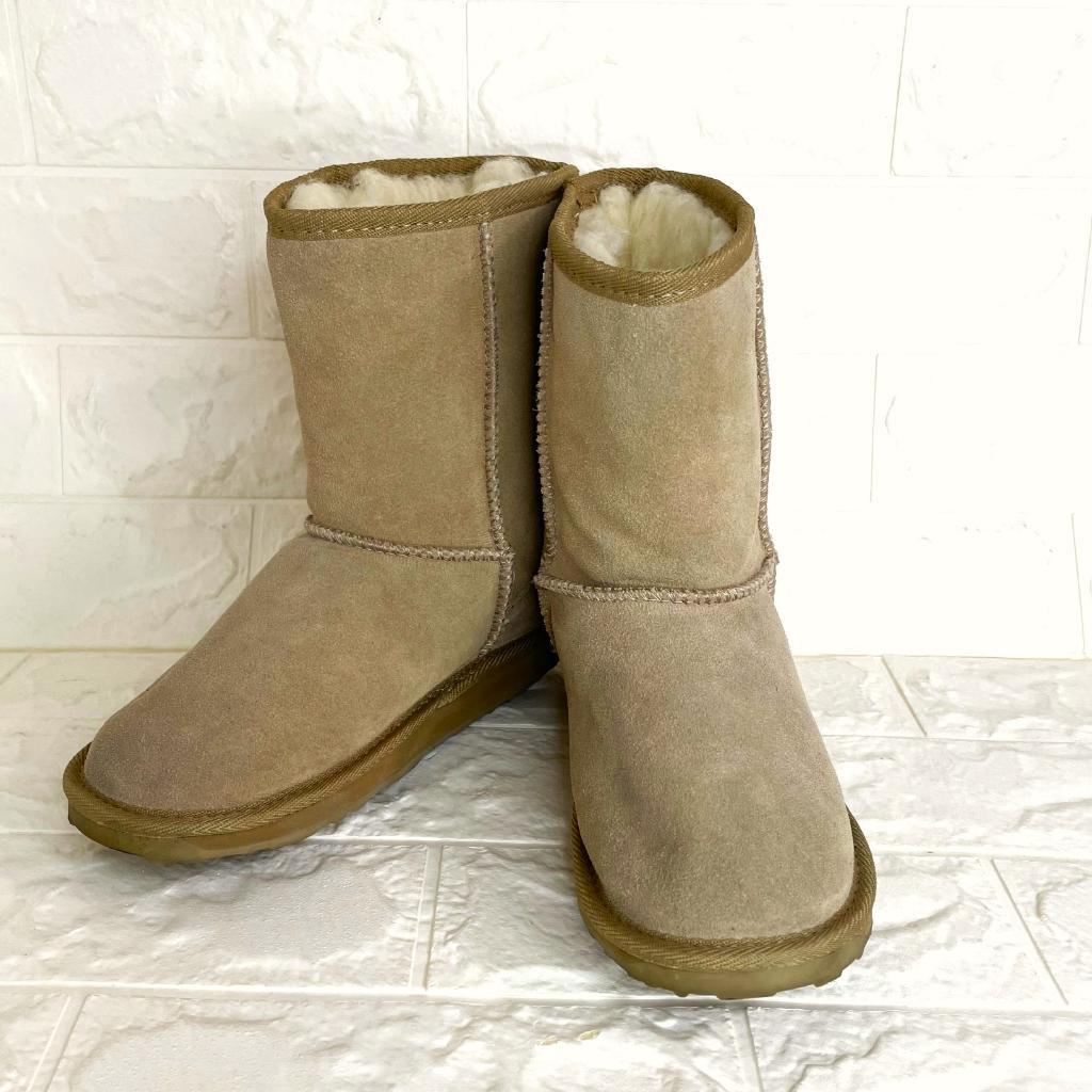 【エミュ】 『ムートン ブーツ』 ◆[サイズ]=20.0 ◆[実寸(平置きcm)]=履き口~かかと19 ◆[色]=グレージュ系ライトベージュ ◆[デザイン]=内側ボア かかとロゴタグ ◆[状態]=全体的に綺麗なお品です ◆[材質]=8枚目画像参照 ムートン素材 |