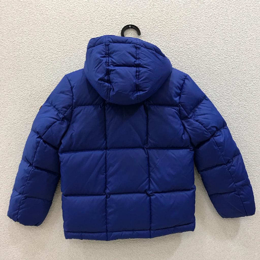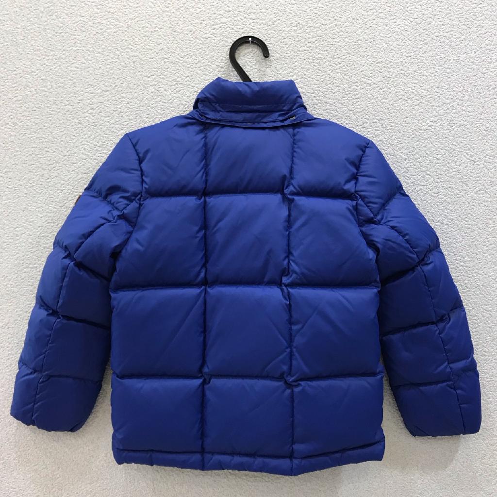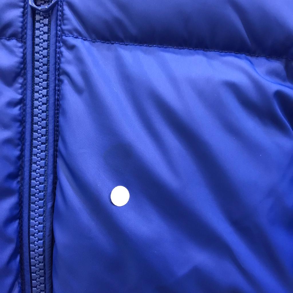 | コメント | 【サイズ表記】122【実寸】身幅40 総丈49【材質】タウン75%、フェザー25%【特徴】ブルー フードは取り外し可 裏地付(ポリエステル) キャラクターマーク刺繍 前ファスナー 前ポケット【状態】前にしみあり |