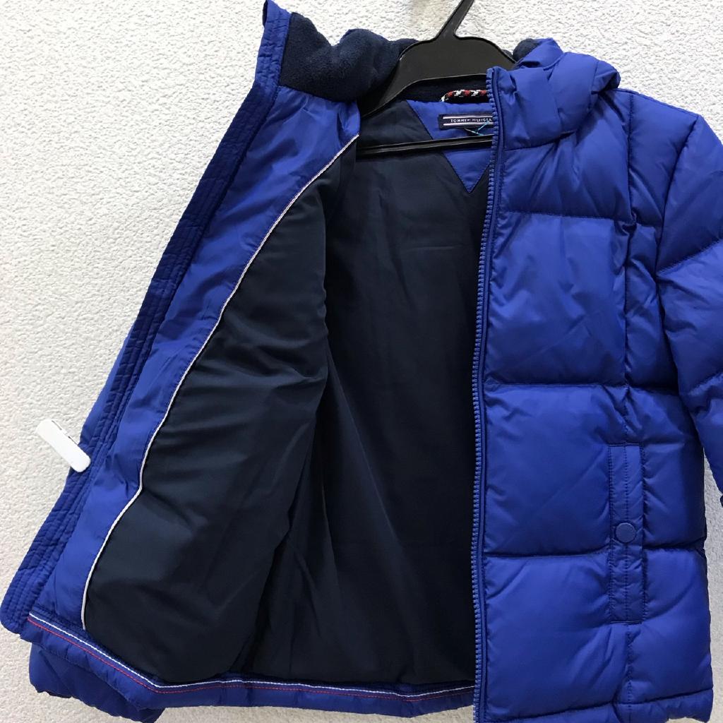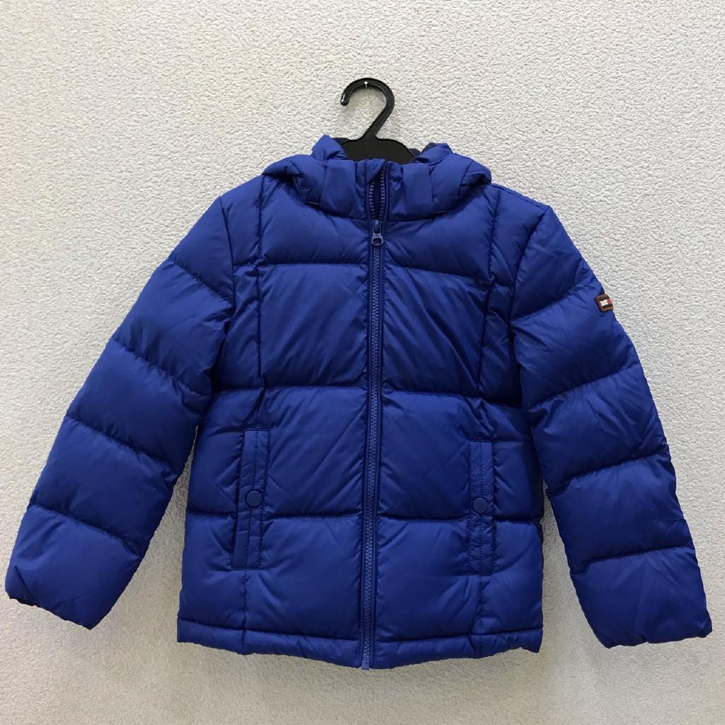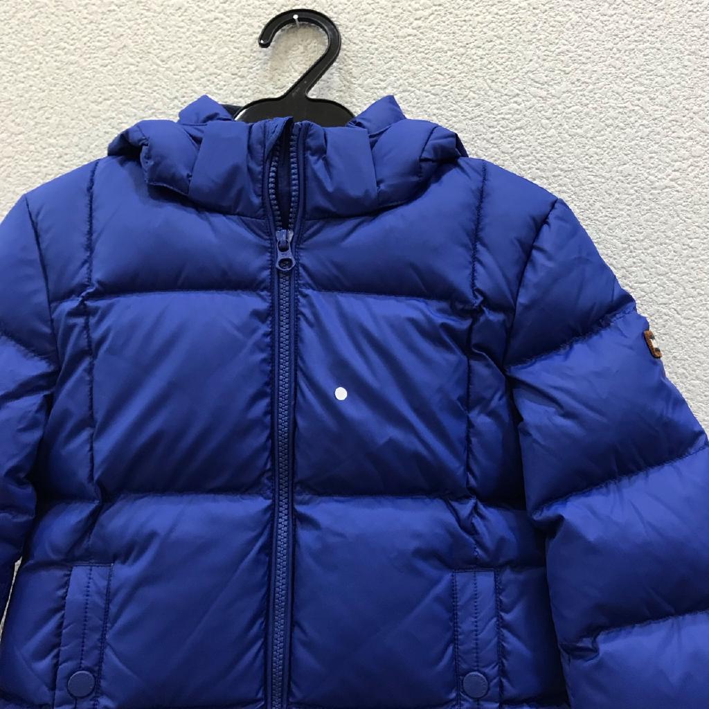 | コメント | 【サイズ表記】122【実寸】身幅40 総丈49【材質】タウン75%、フェザー25%【特徴】ブルー フードは取り外し可 裏地付(ポリエステル) キャラクターマーク刺繍 前ファスナー 前ポケット【状態】前にしみあり |