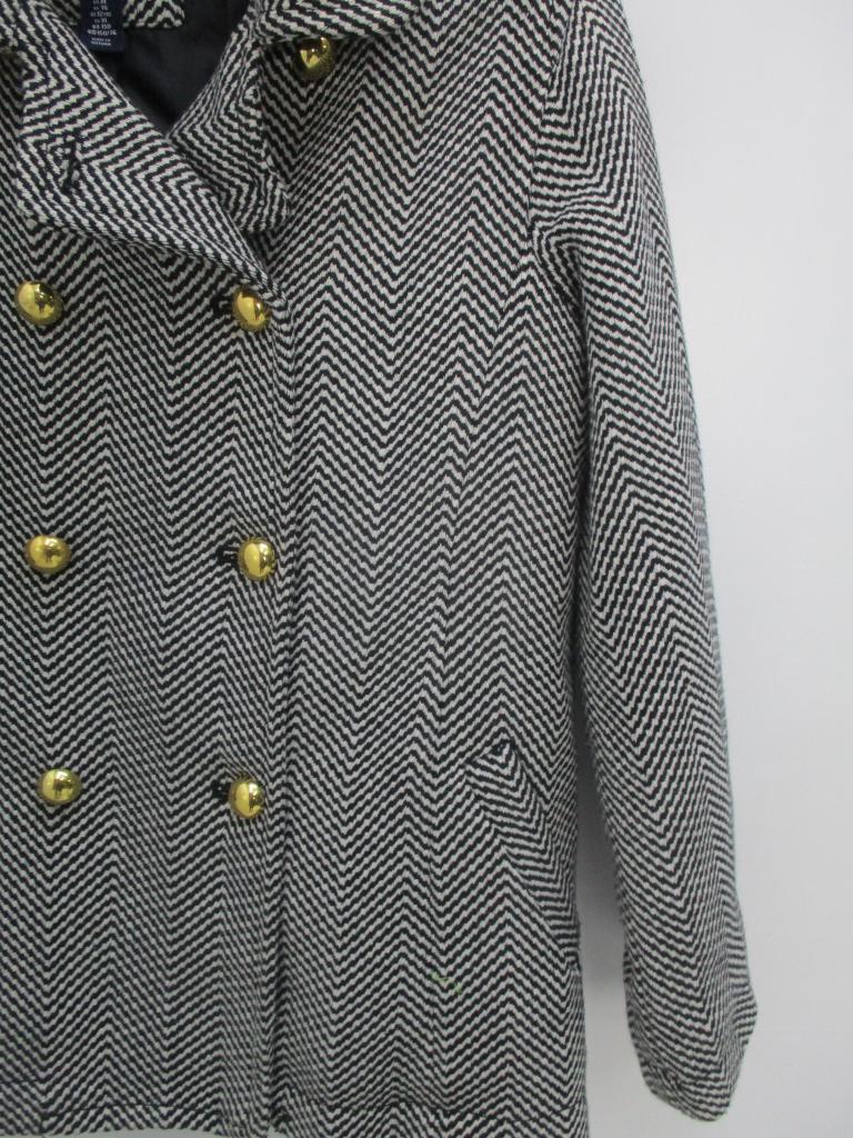 ★ピーコート♪ 【材質】表/ポリエステル50%アクリル25% 綿6% 毛3%その他6% 裏地&中綿、/ポリエステル100 % 【生地説明】起毛地風地 【実寸】身丈58 身幅46 袖丈49 【色、柄】黒×白 【デザイン、特徴】前、ボタン止め開閉 ポケット前両サイド 【状態】少々毛羽立ちあり 【※クリックポスト発送不可】 |