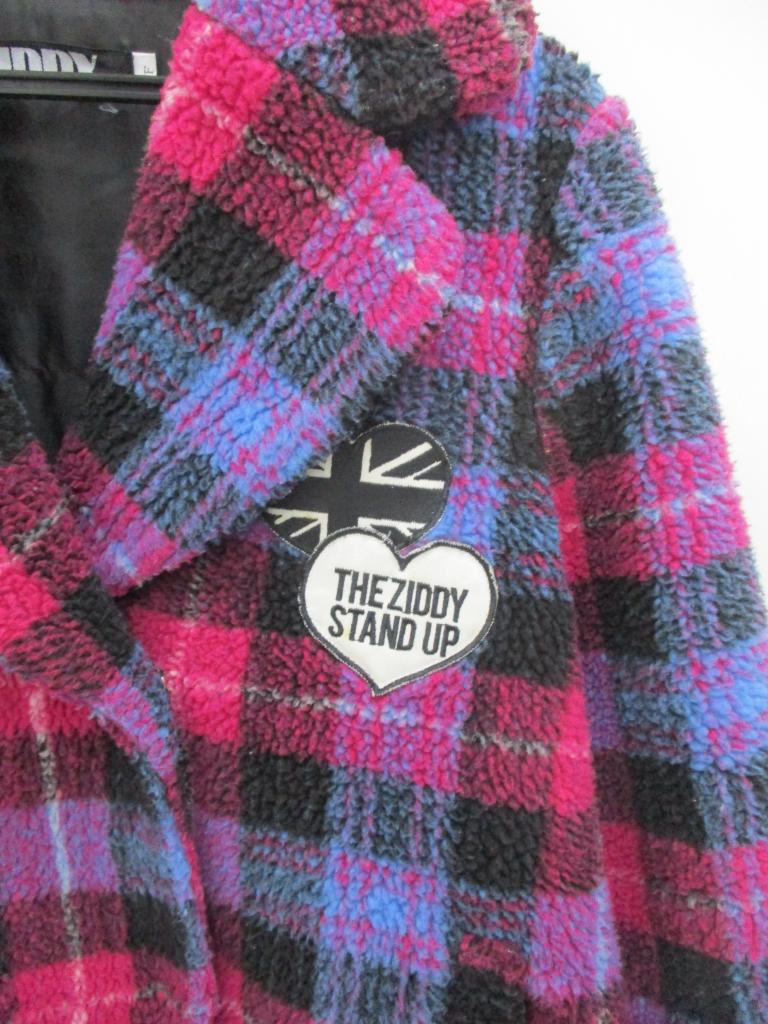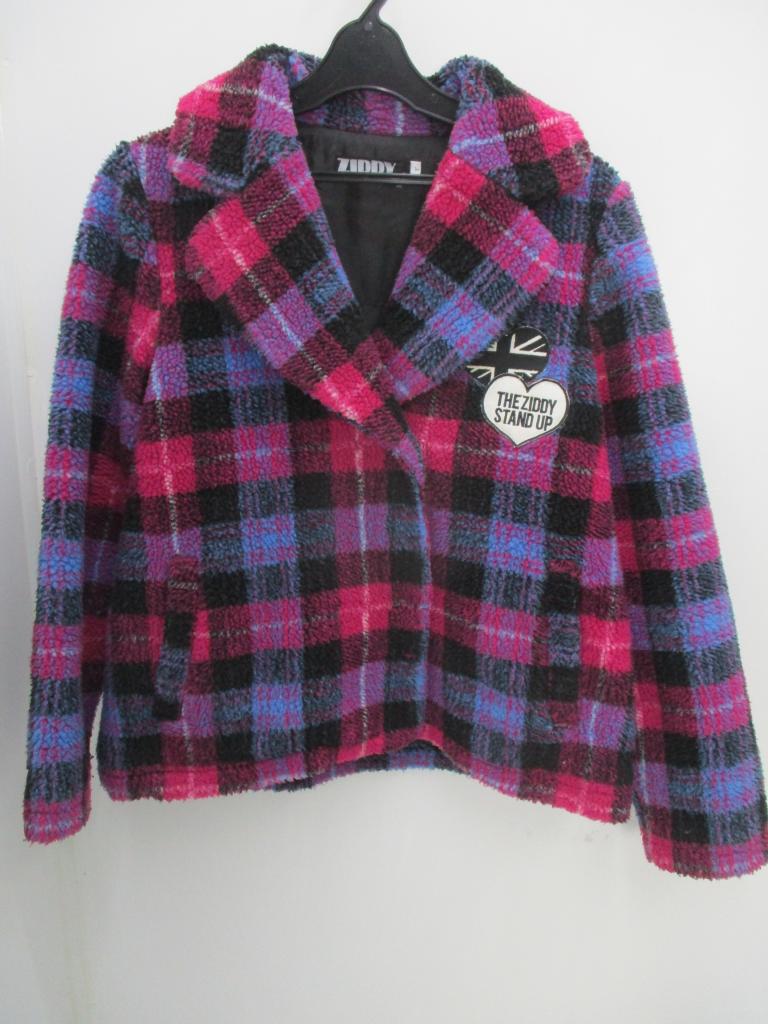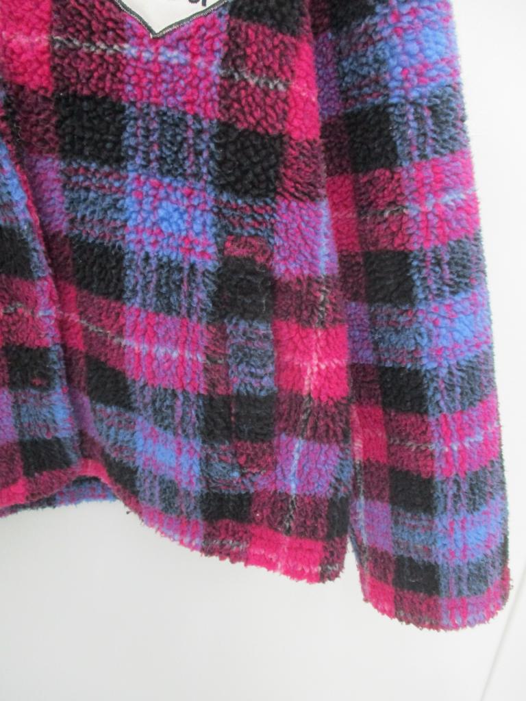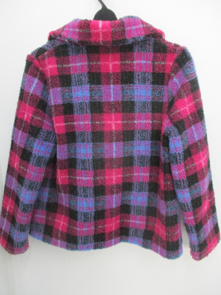 ★ボアコート♪ 【材質】ポリエステル100 【生地説明】ボア地 【記載サイズ】F (160㎝相当) 【実寸】身丈58 身幅48 袖丈60 【色、柄】ピンク×黒×青 チェック 【デザイン、特徴】ワッペン付き 裏地あり 前スナップ止め ポケット前×2 【状態】少々毛羽立ちあり 【※クリックポスト発送不可】 |