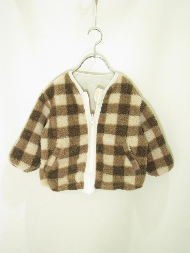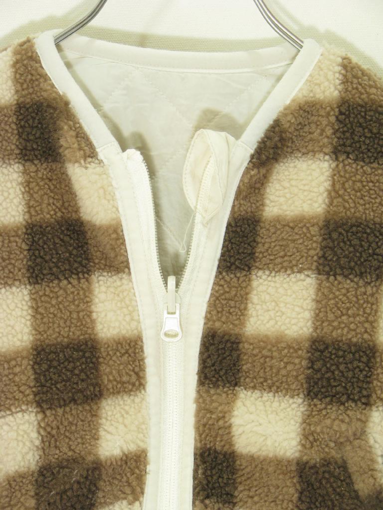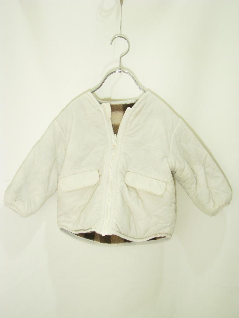【実寸(cm)】着丈37 身幅35 肩幅32 袖丈25.5 【色】オフ白 【デザイン】前ファスナー 中綿入り 裏ボア 【状態】ステッチ取れ、ゆるみ数か所 |