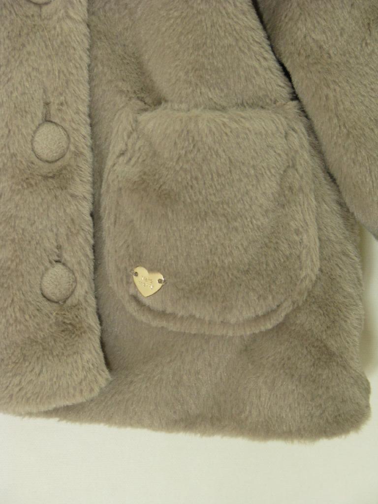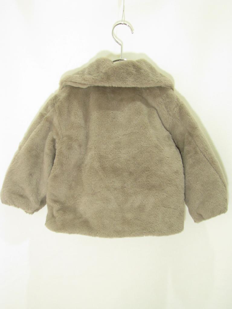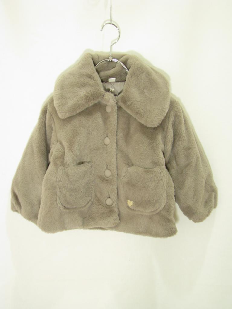 【サイズ】90~100 【実寸(cm)】着丈38 身幅35 肩幅32 袖丈29 【色】グレージュ 【デザイン】フェイクファー 裏地あり 前ボタン 【状態】少々毛羽立ち |