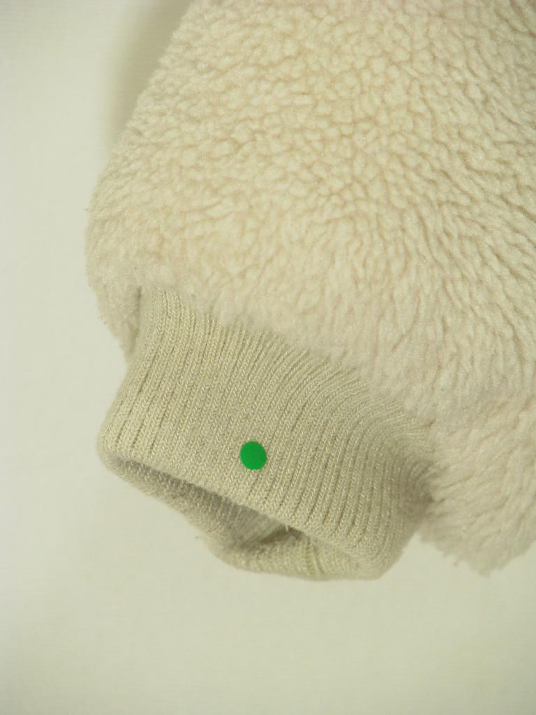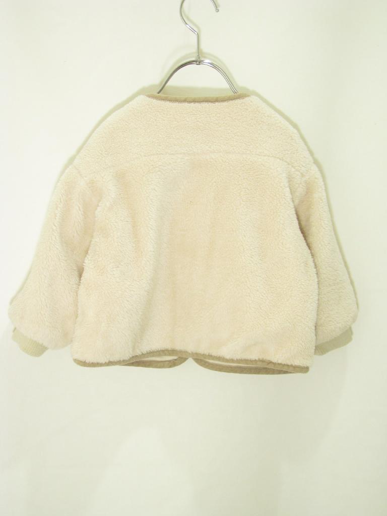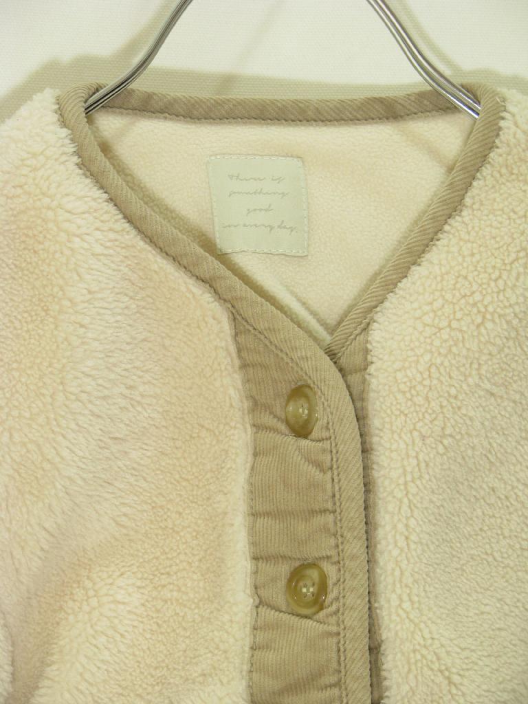 【実寸(cm)】着丈34 身幅37 肩幅33 袖丈24.5 【色】オフ白 【デザイン】ボア 前ボタン 裏地あり 【状態】袖口に毛玉、少々汚れ |