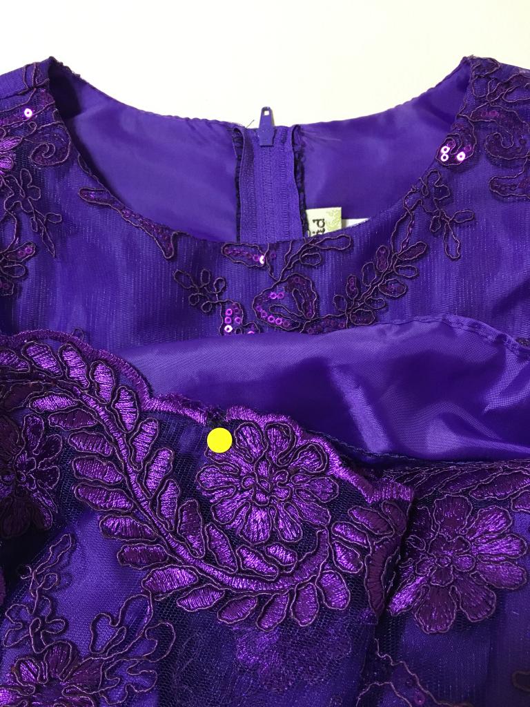 | コメント | ドレス 表示サイズ:9-10(120-130くらい) パープル系 スカート裏パニエ付き 後ろスカート裾にホツレ少々 肩~裾96 身幅36 肩幅25 |