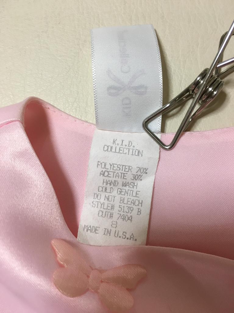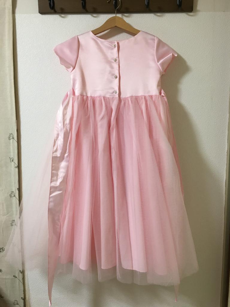 | コメント | ドレス 表示サイズ:8(130くらい) ピンク 後ろにファスナー コサージュのリボンの先にホツレ少々 肩~裾90 身幅35 肩幅27 袖丈10 |