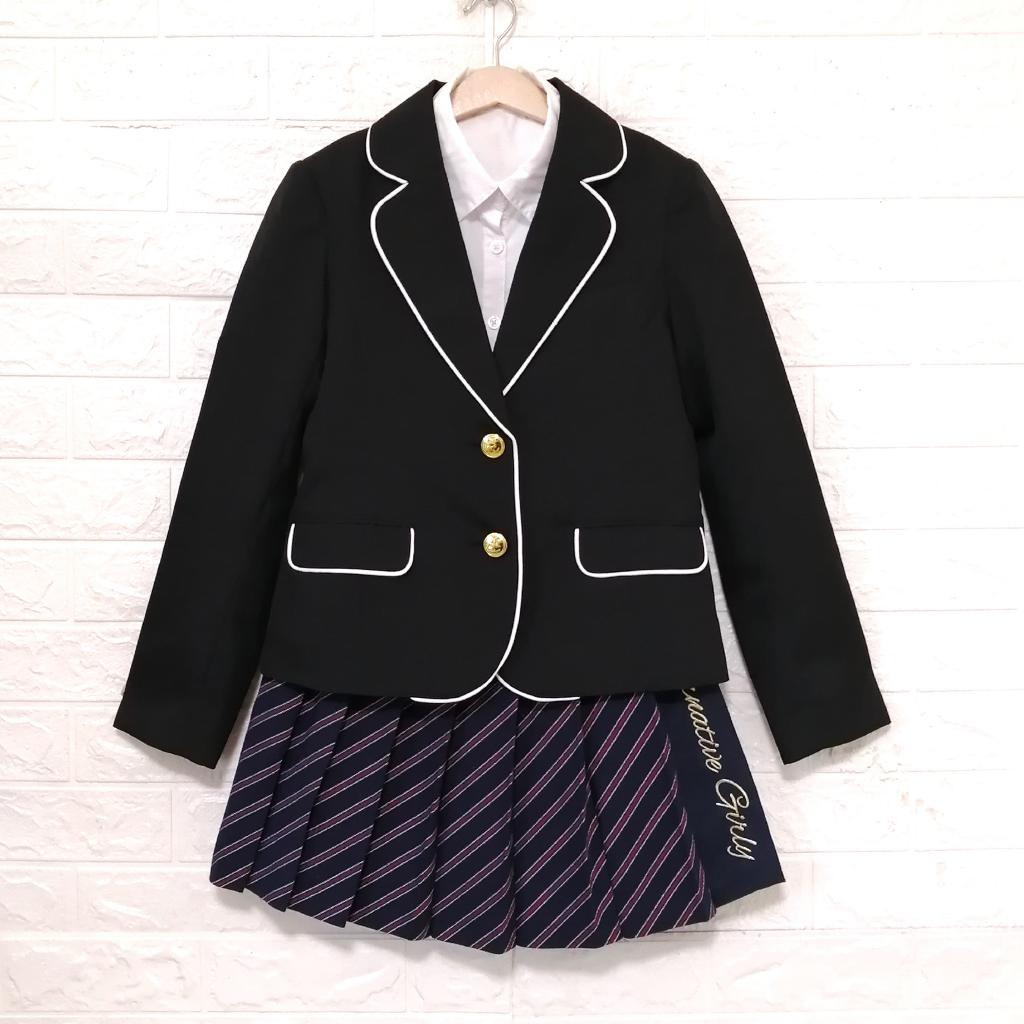 【アルジー】 『ジャケット・スカート・ブラウスのフォーマル 3点セット』 ◆[サイズ]=150 〇ジャケット ◆[実寸(平置き㎝)]=身幅40.5 肩幅35 袖丈54.5 着丈50.5 ◆[色]=ブラック×ホワイト ◆[デザイン]=フロント開閉金ボタン パイピング仕様 バック裾スリット 裏地あり ◆[状態]=全体的に綺麗なお品です ◆[材質]=7枚目画像参照 〇スカート ◆[実寸(平置き㎝)]=W幅29.5~ スカート丈41.5 ◆[色]=ネイビー×ボルドー×ホワイト他 ◆[デザイン]=左サイド開閉ファスナー・ホック 斜めストライプ柄 ウエスト左サイド飾りベルト・ラップ風デザイン 左サイドロゴ刺繍 裏地あり ◆[状態]=全体的に綺麗なお品です ※枚目画像のシールは目印です ◆[材質]=12枚目画像参照 〇ブラウス ◆[実寸(平置き㎝)]=身幅42 着丈53 ◆[色]=ホワイト ◆[デザイン]=フロント開閉ボタン 左胸ポケットエンブレム刺繍 ◆[状態]=全体的に綺麗なお品です ◆[材質]=16枚目画像参照 |
