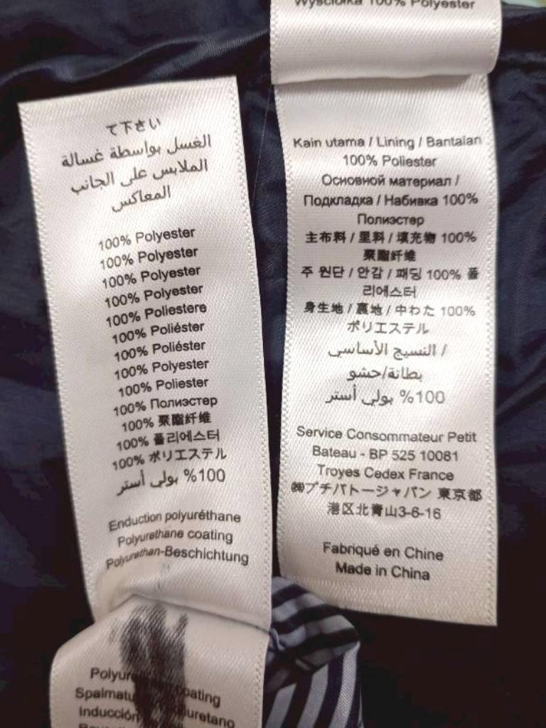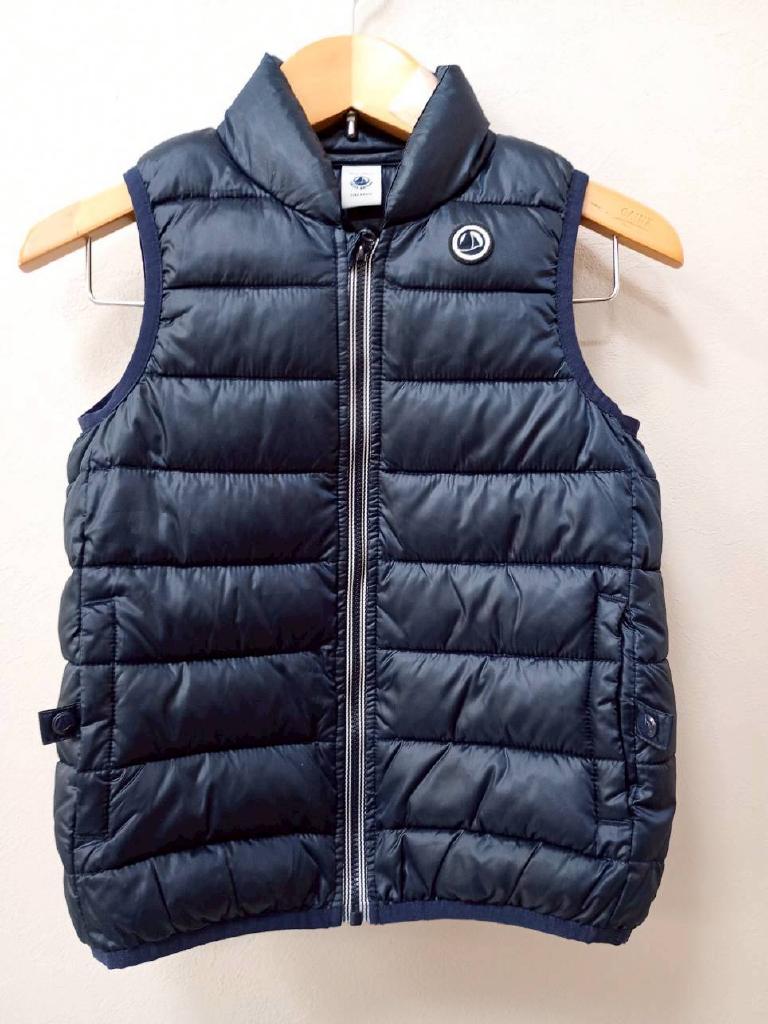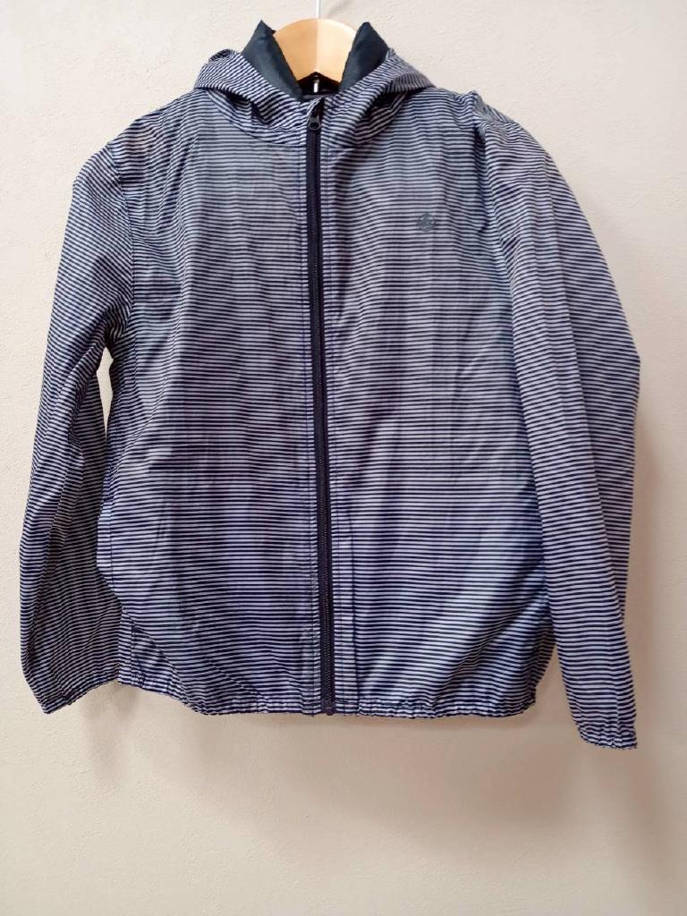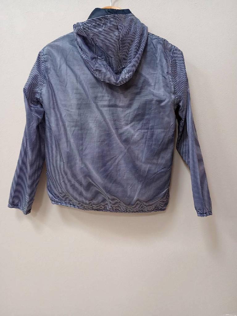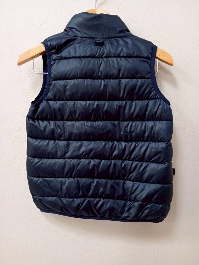 【メーカーサイズ】8ans 128 【実寸(cm)】①身幅38 着丈50 袖丈45 ②身幅36 着丈44 【素材】ポリエステル ベスト:(身生地・裏地・中綿)ポリエステル 【デザイン・色】①ウインドブレーカー:紺 白 ボーダー 前ファスナー 横ポケット ②中綿入りベスト:紺 前ファスナー 横ポケット 【状態】少々毛羽立ち |