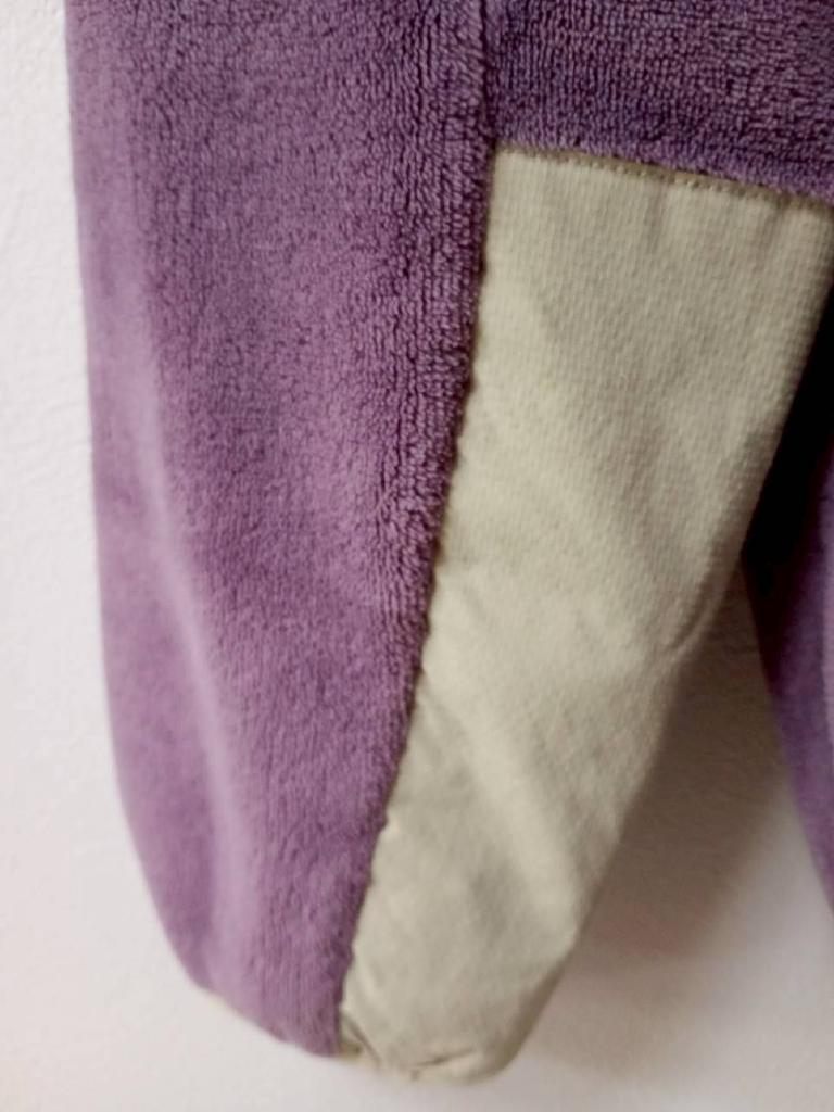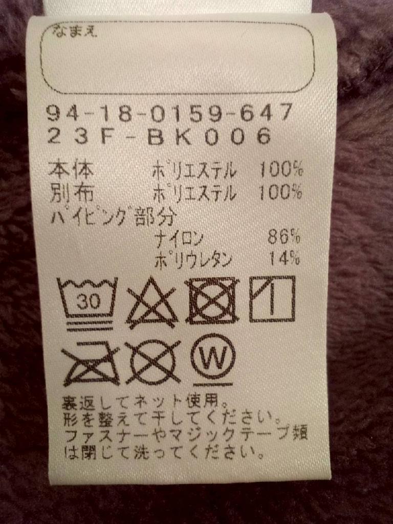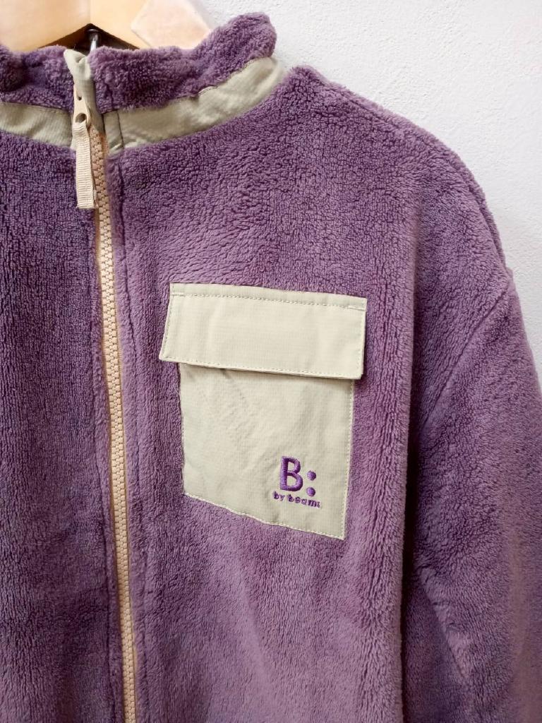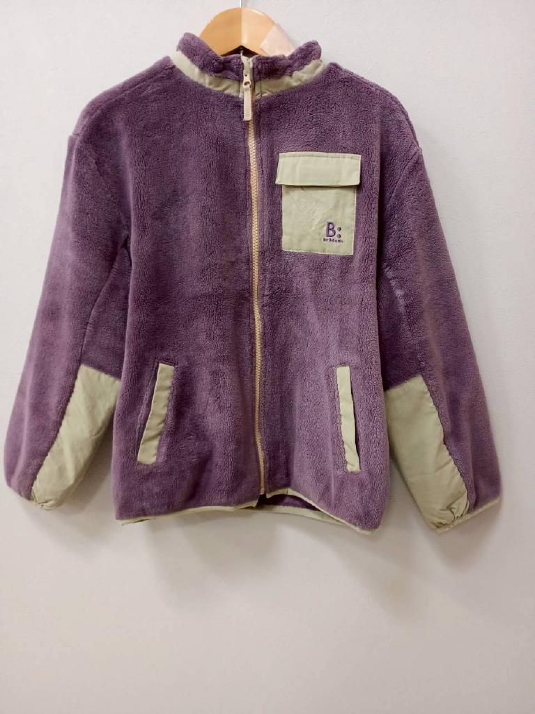 ボアフリース ブルゾン 【メーカーサイズ】140 【実寸(cm)】身幅47 着丈53 袖丈44.5 【素材】本体・別布:ポリエステル パイピング部分:ナイロン ポリウレタン 【デザイン・色】紫 ボア地 フリース 前ファスナー 前ポケット(ブランド刺繍) 【状態】少々毛羽立ち |
