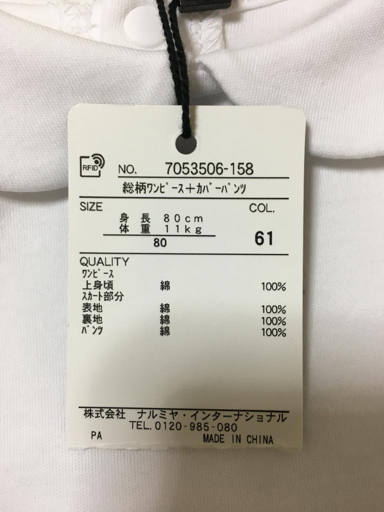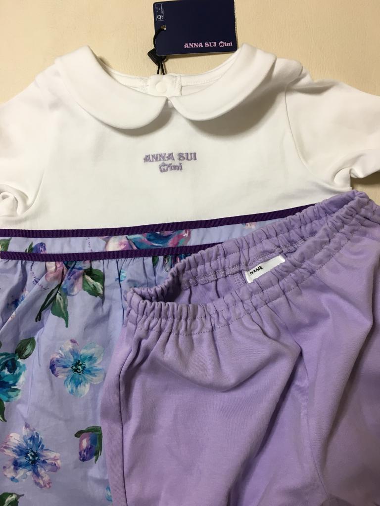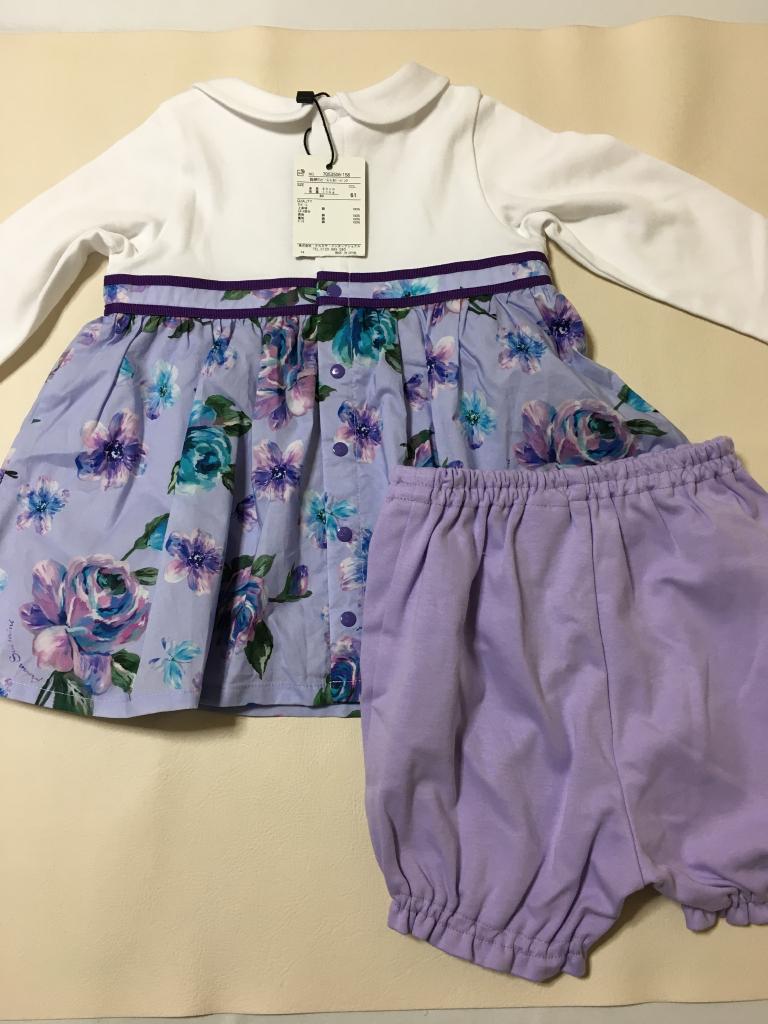 | コメント | ①ワンピース②カバーパンツのセット 表示サイズ:80 2025年製 定価17380円(税込) ※公式ショップで現在定価で販売中の商品です(2025年11月現在) ①白×ラベンダー 後全開スナップ 肩~裾40 身幅27 ②ラベンダー ウエスト(ゴム)40~ 股上20 股下7 |