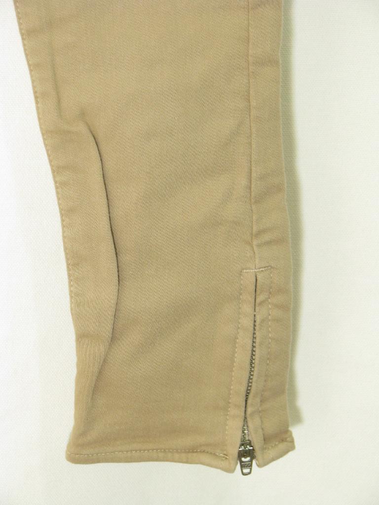 【実寸(cm)】ウェスト46 股上18.5 股下41 【色】ベージュ 【デザイン】前鍵ホック&ファスナー ウエストアジャスター 両裾サイドにファスナー 【状態】少々毛羽立ち |