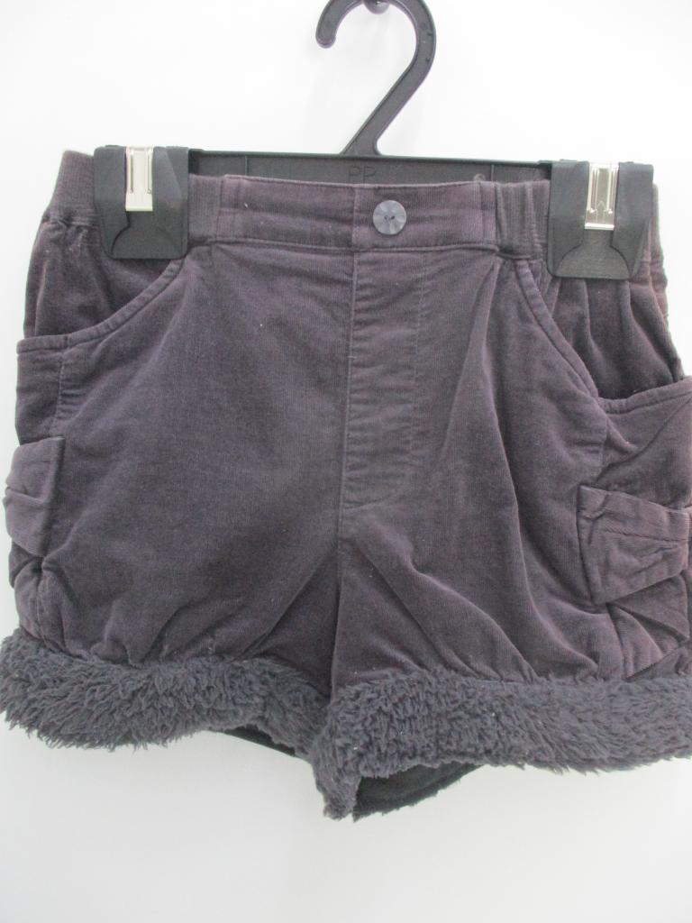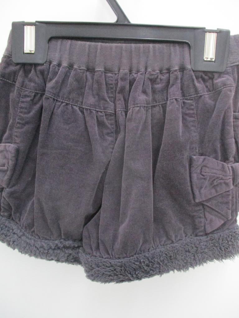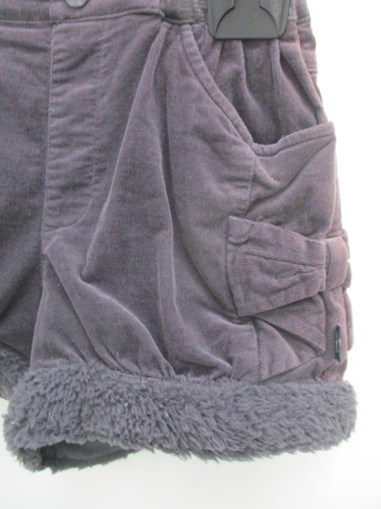 ★裾ボアー付き♪ 【材質】綿99%ポリウレタン1% 【生地説明】ストレッチ入り 【実寸】ウエスト56㎝~(よこ~後ろゴム入り伸びます) ズボン丈26㎝ 股下7,5㎝ 【色、柄】茶がかった紫 【デザイン、特徴】 ポケット両サイド&共布リボン付きデザイン 【状態】少々毛羽立ちあり |