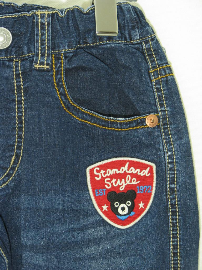 【実寸(cm)】ウェスト46 股上20 股下58 【色】紺 【デザイン】デニム 色あせ加工 ウエストアジャスター 【状態】少々色あせ |