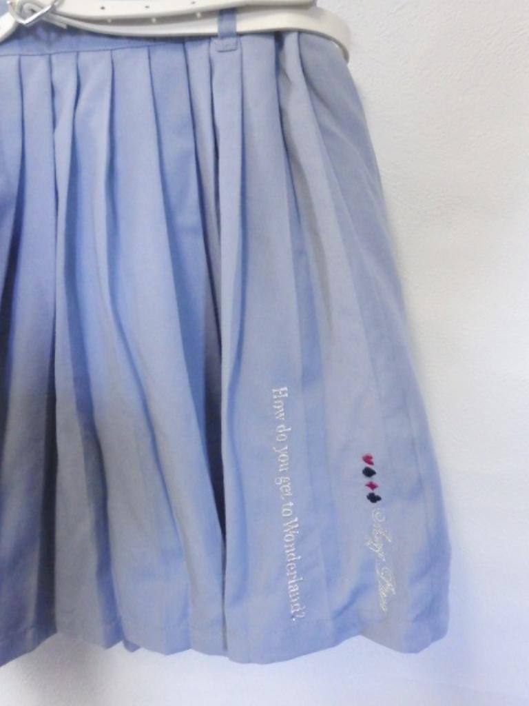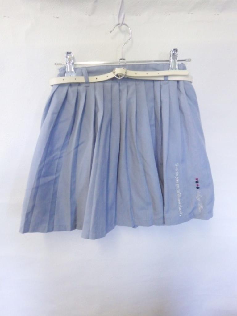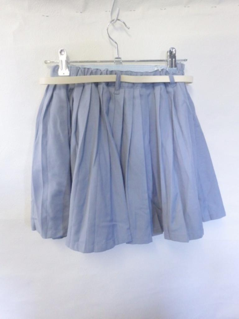 【評価】3 【サイズ】130 【年式】2022年製 【定価】12800円 【実寸】ウエスト幅27 スカート丈36 【材質】ポリエステル79% レーヨン21%(裏地)ポリエステル100%(ベルト)合成皮革 【状態】毛羽立ち・着用感…少々 【色・デザイン】ブルー アジャスターゴム |