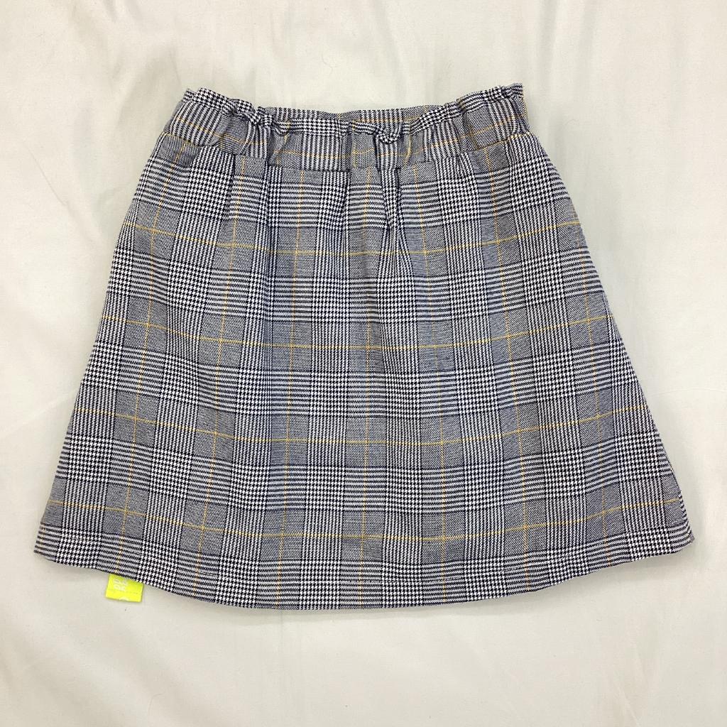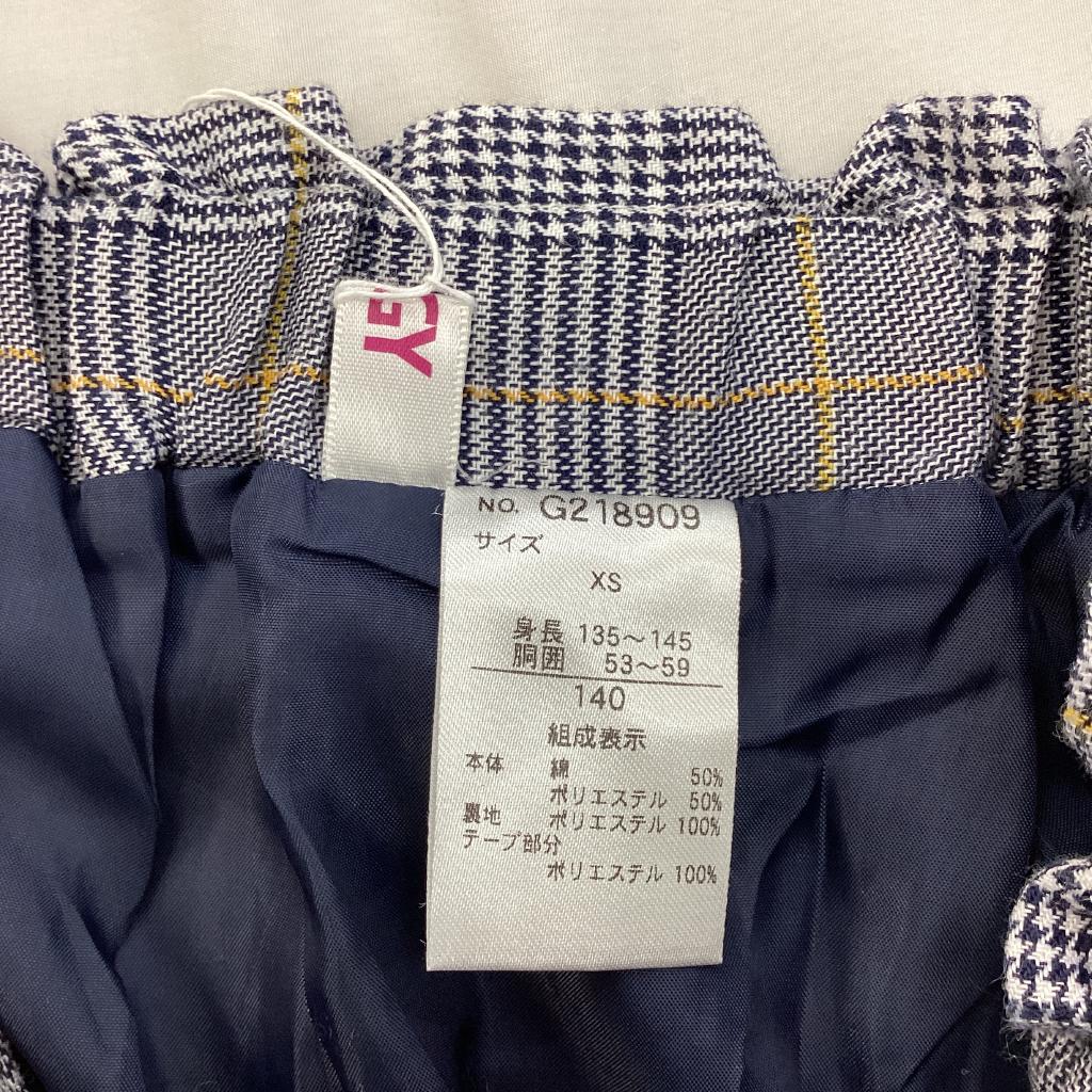 【サイズ】140cm 【実寸(㎝)】W52 H90 丈37 【素材(%)】※タグ参照 【裏地(%)】あり 【色】ネイビー系 【デザイン】ネイビー×アイボリー×イエローのチェック柄 ウエストゴム 両横飾りベルト プリントあり 裏地あり ポケットあり 【状態】使用感あり(中) 毛羽立ちあり(中) |