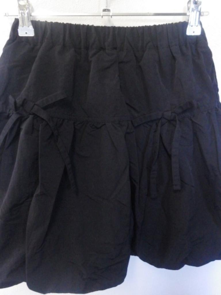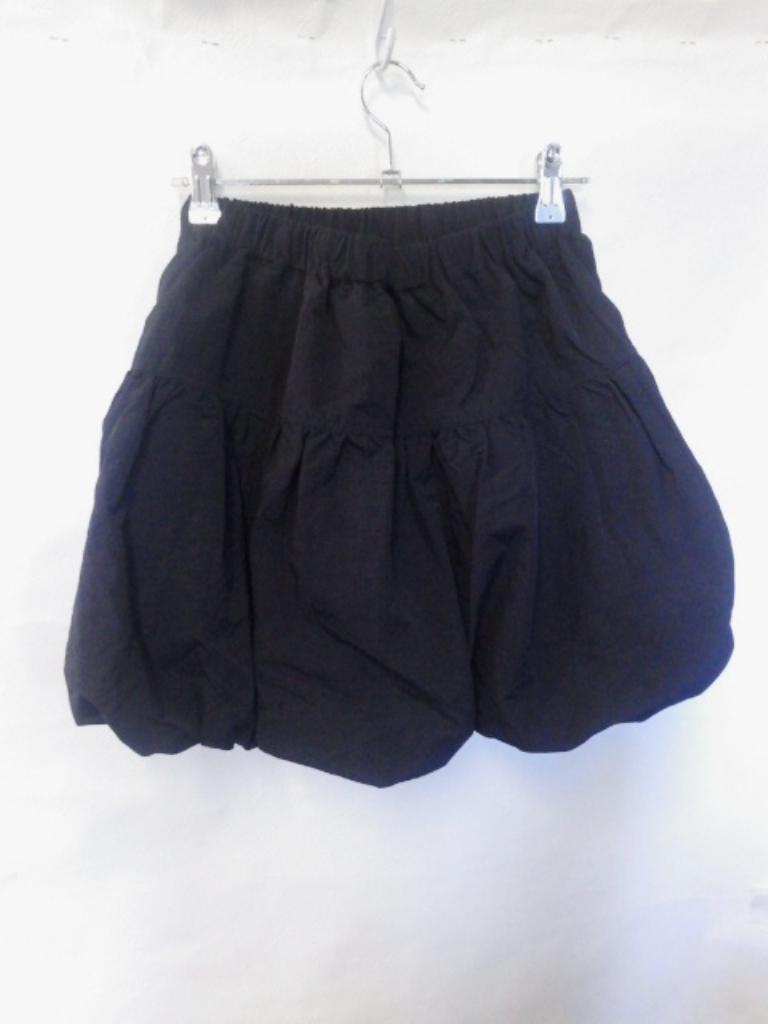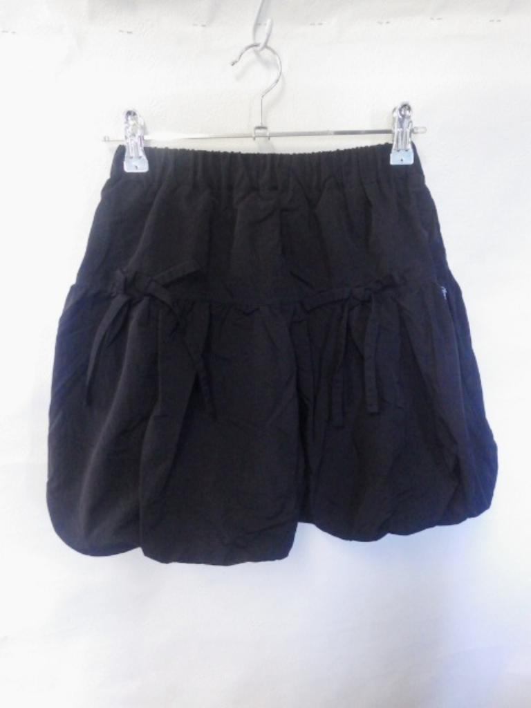 【評価】3 【サイズ】160 【実寸】ウエスト幅29 スカート丈38 【材質】ナイロン100%(裏地)ポリエステル100%(インナーパンツ)ポリエステル100% 【状態】着用感…少々 【色・デザイン】ブラック 右前内側ポケット ウエストゴム |
