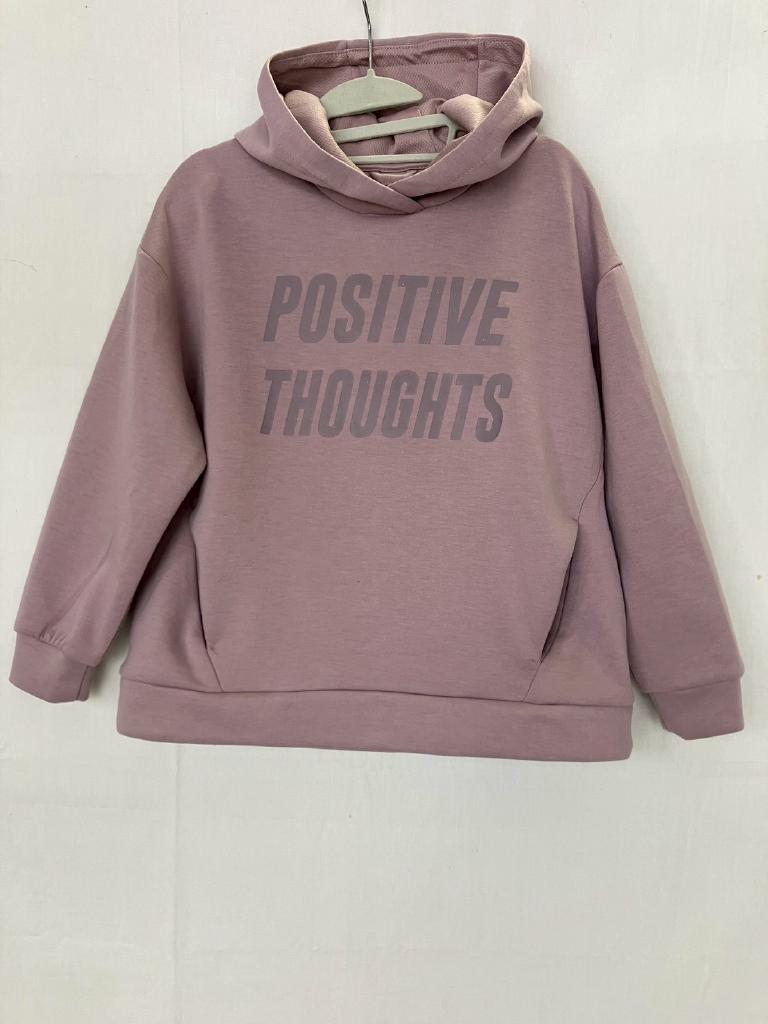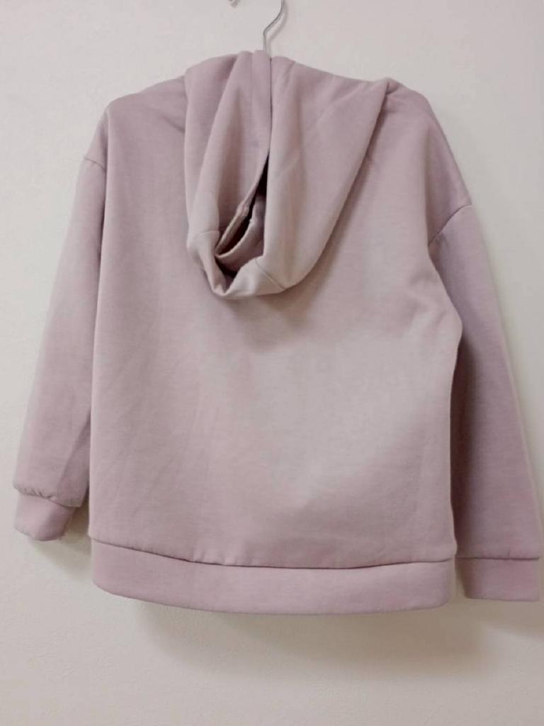 【メーカーサイズ】8 CM128 【実寸(cm)】身幅43.5 着丈46.5 ゆき丈59 【素材】タグ切り取りの為不明 【デザイン・色】くすんだピンク トレーナー地 前ポケット 前プリント 【状態】少々毛羽立ち・毛玉 |