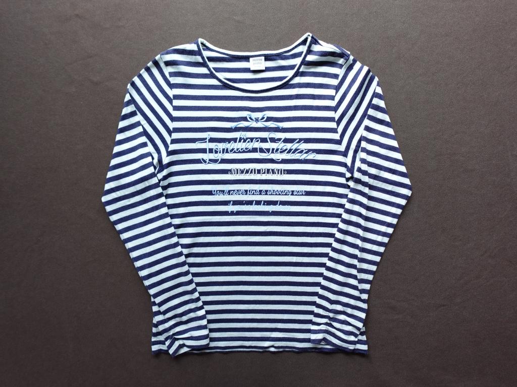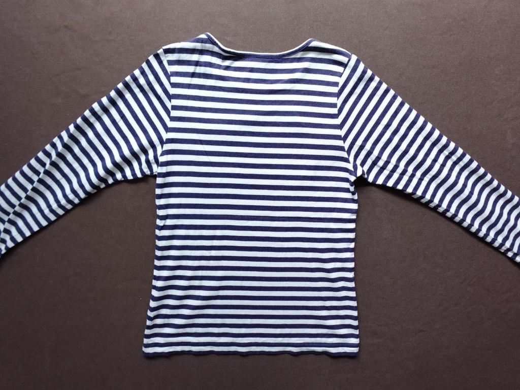| コメント | 綿・レーヨン(モダール) ボーダー ラインストーン ロゴの刺しゅう 袖口ゴム入り 色あせ・ピリング・生地ヨレほんの少々 実寸サイズ:身幅36cm/着丈47cm |