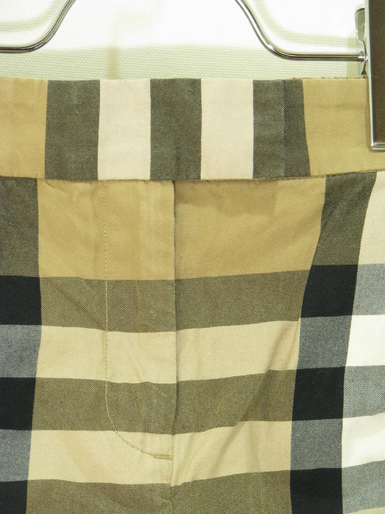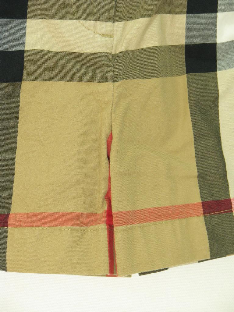 バーバリージャパン(株)製 【サイズ】128 【実寸(cm)】ウェスト50~ 股上24 股下6 【色】ベージュ、黒、赤など 【デザイン】前鍵ホック&ボタン&ファスナー ウエスト後ろゴム 【状態】少々色あせ、シワ |