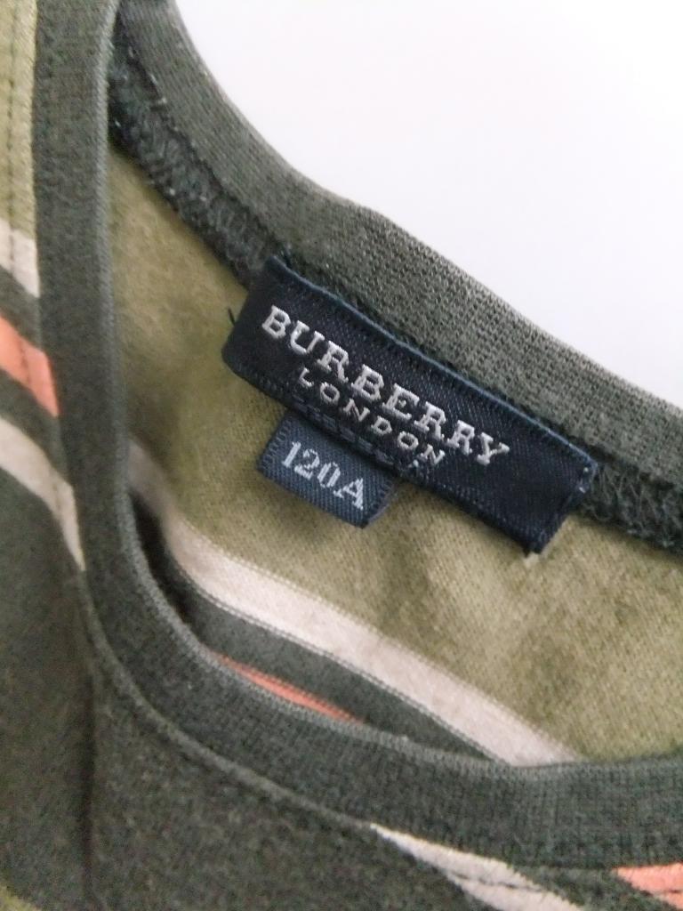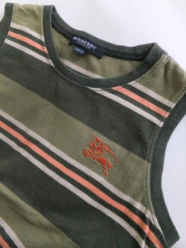 バーバリー 三陽商会製 タンクトップ 【記載サイズ】120 【実寸(㎝)】胸囲70 着丈44 肩幅26 【素材(%)】綿100 【色・素材感】茶 カーキー ボーダー柄 【デザイン等】ロゴ刺繍あり 【状態】 使用感、毛羽立ちあり 目立つダメージはありません |
