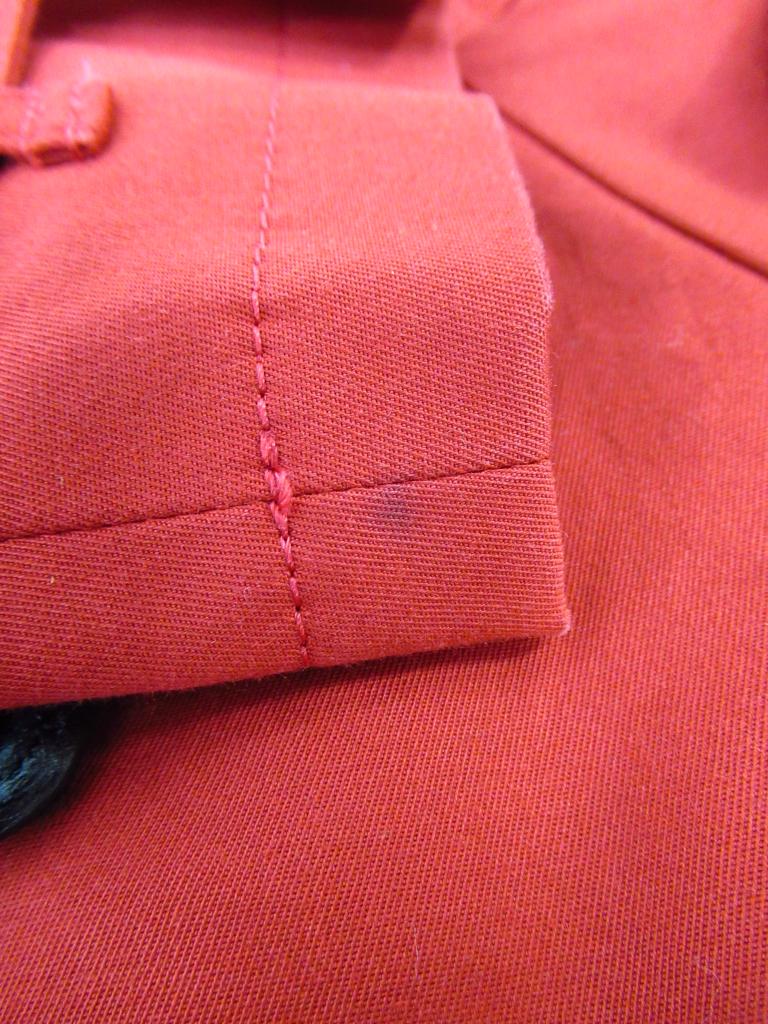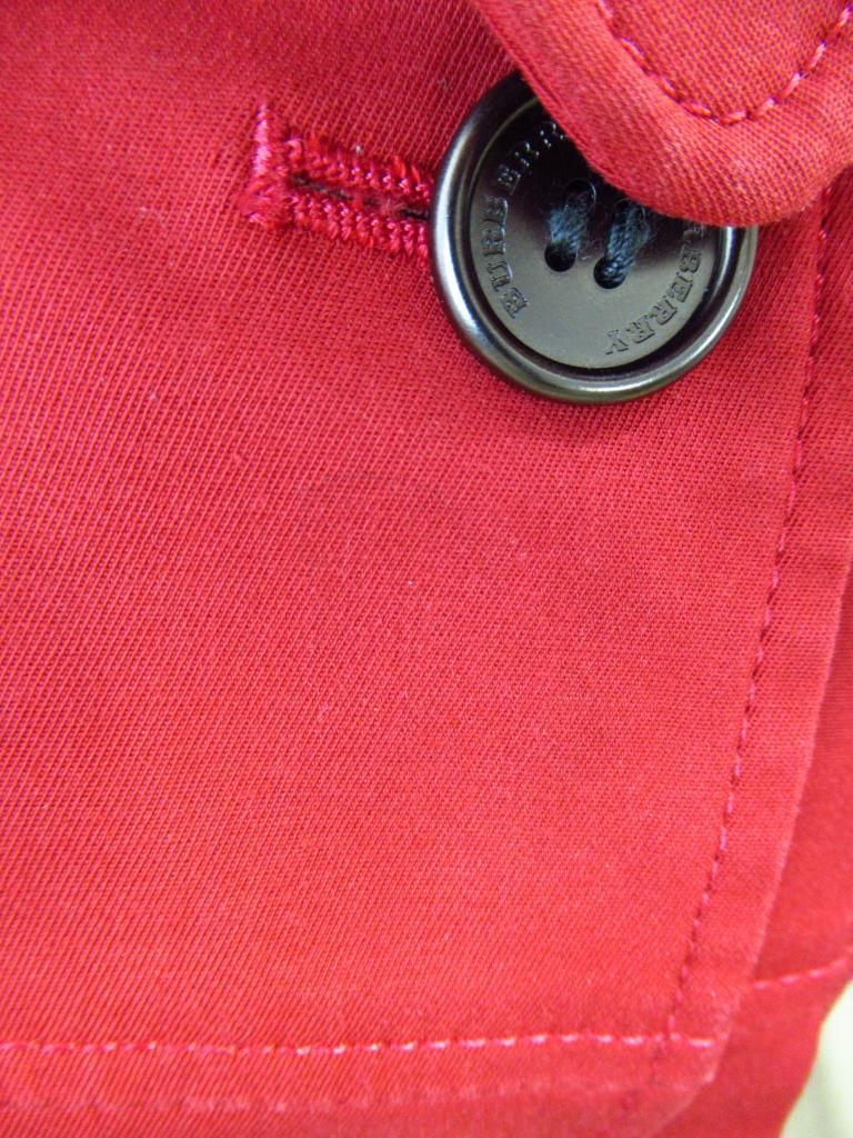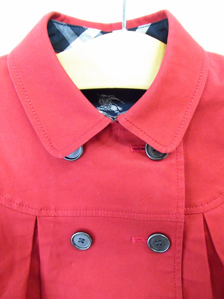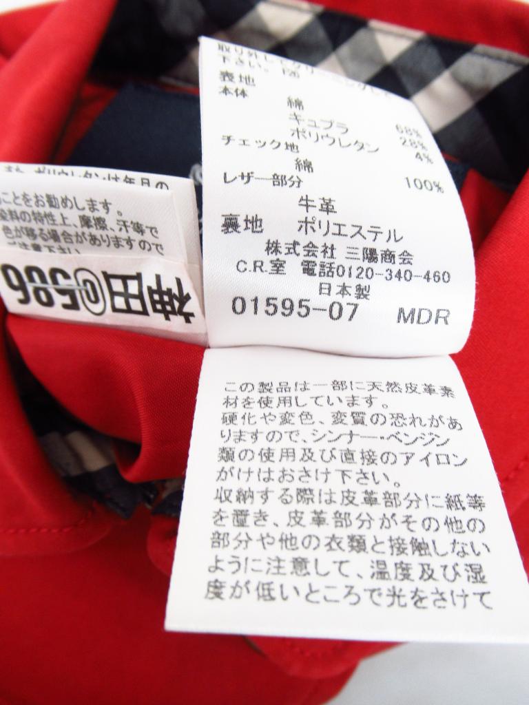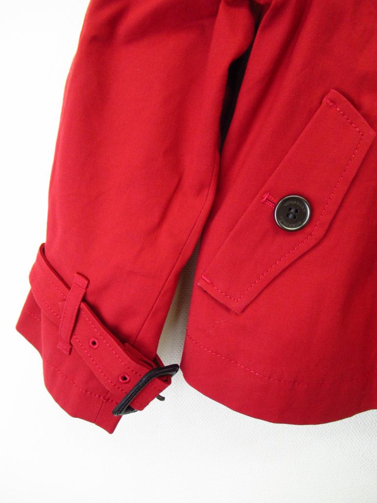 【サイズ表記】A 【材質】キュプラ混、チェック地:綿、裏地:ポリエステル、レザー部分:牛革 【実寸サイズ】肩幅31.5身幅40袖丈37着丈38 【デザイン】レッド 袖口にベルト、取り外し可能 春、秋コート 日本製 三陽商会製 裏地あり 前ボタン・カギホック 前左右ポケット 【状態】前中央あたりに薄く汚れ0.5㎝~1cm以内数個 前中央上にうっすら輪じみ3cm、他薄汚れ白汚れ少々あり 毛羽立ち少々、着用感・色あせ中くらい |