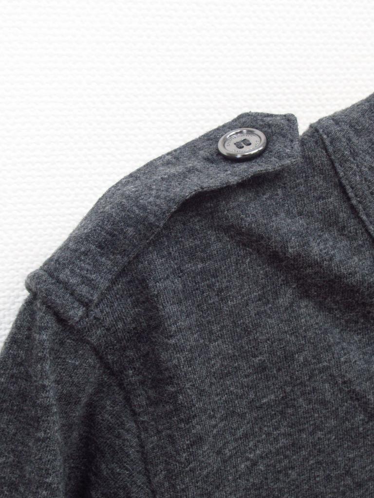 【サイズ表記】14Y164㎝ 【実寸サイズ】肩幅34.5身幅40.5袖丈58着丈79 【デザイン】杢濃グレー 肩ベルト付き 三陽商会製 前・袖口ボタン 【状態】着用感・色あせ・毛羽立ち少々 |