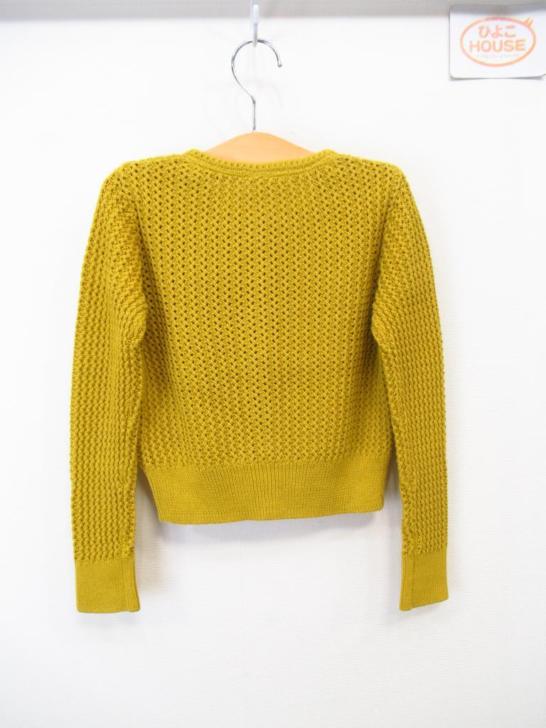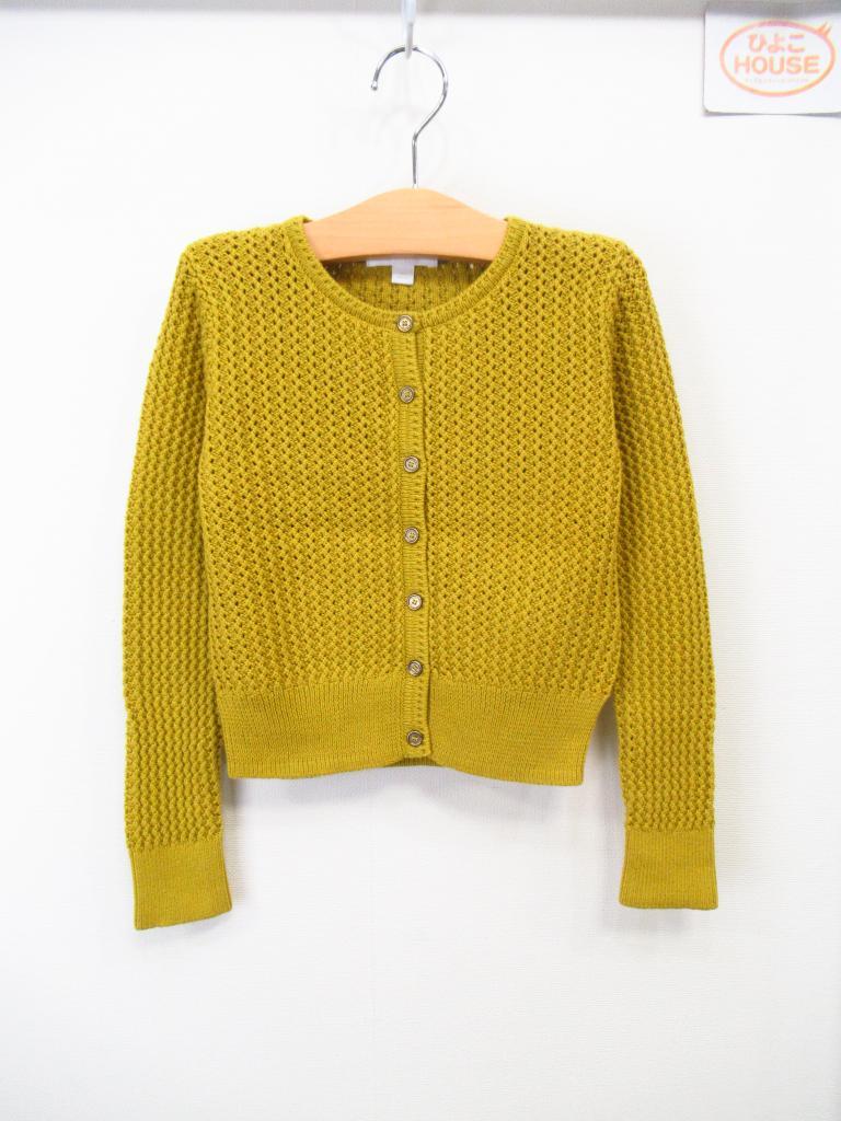 「コットンカーディガン」 【サイズ表記】8Y128㎝ 【実寸サイズ】肩幅30.5身幅38袖丈49着丈37.5 【デザイン】マスタード色 透かし編み ニット 三陽商会製 前ボタン 【状態】着用感・色あせ・毛羽立ち少々 |