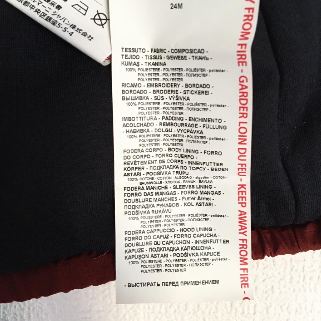 | コメント | ジョルジオアルマーニジャパン(株)【サイズ表記】24M/92㎝【実寸】身幅29 着丈34.5【材質】中綿:ポリエステル【特徴】明るいブラウン 中綿入り フードつき ブランドロゴ刺繍 ファスナートップにブランドロゴ入り 裏地付(身頃は綿、袖ポリエステル) 前ファスナー 前ポケット 袖口ゴム【状態】胸元白い汚れ少々/ |