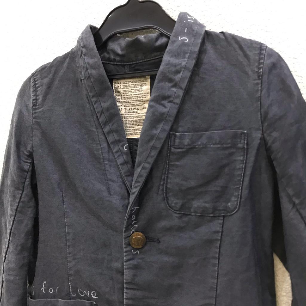 ●ご奉仕価格● 【実寸】身幅39 総丈48【材質】綿・麻【特徴】ネイビー ロゴプリント 前ボタン 前ポケット/ |