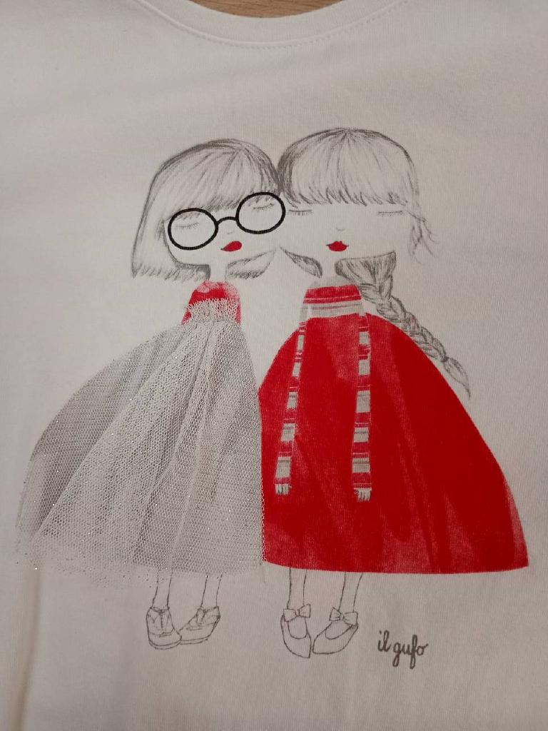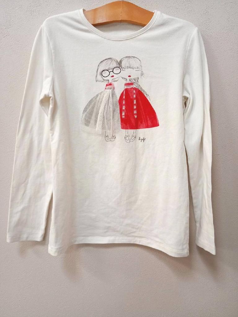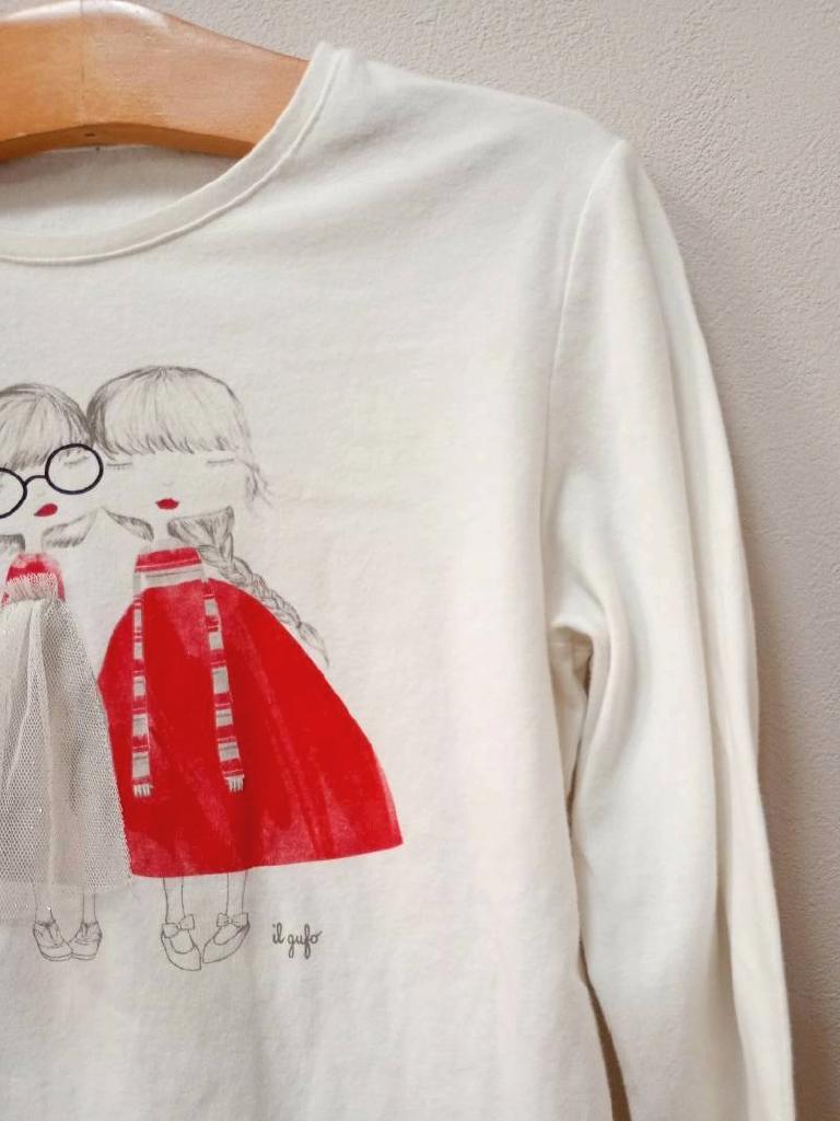 【メーカーサイズ】L/S 【実寸(cm)】身幅35.5 着丈49.5 袖丈46 【素材】綿 ポリウレタン 【デザイン・色】白 赤 グレー 前プリント・チュールドレス 【状態】少々毛羽立ち 袖口汚れ 衿元ホツレ |