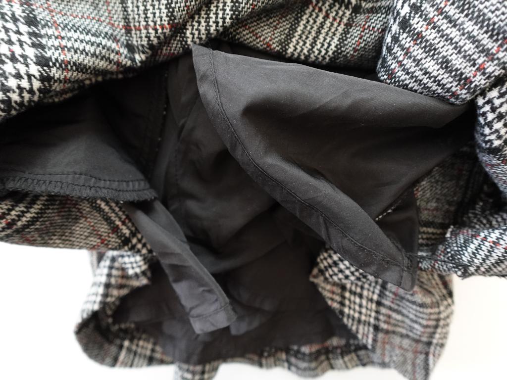 | コメント | 本体:ポリエステル・レーヨン・アクリル・ナイロン・綿・毛 裏地:ポリエステル チェック ロゴの刺しゅう 左サイドファスナー・スナップ 色あせほんの少々 ピリング少々 裏地右サイド留めステッチ脱落 実寸サイズ:身幅30cm/総丈68cm |