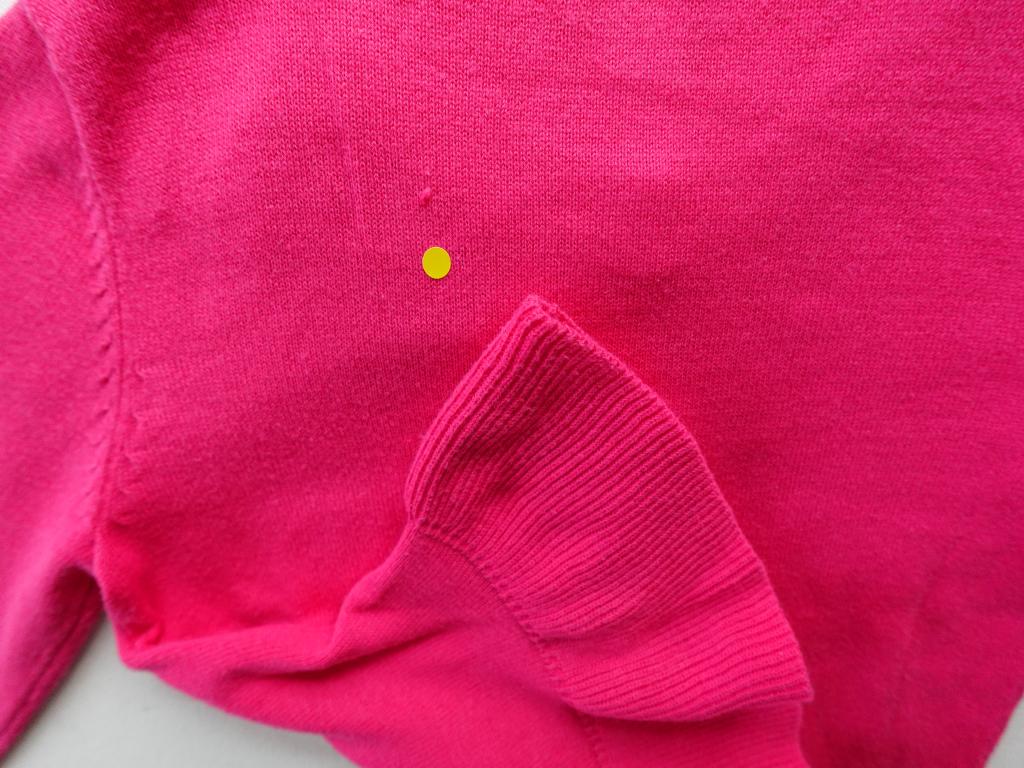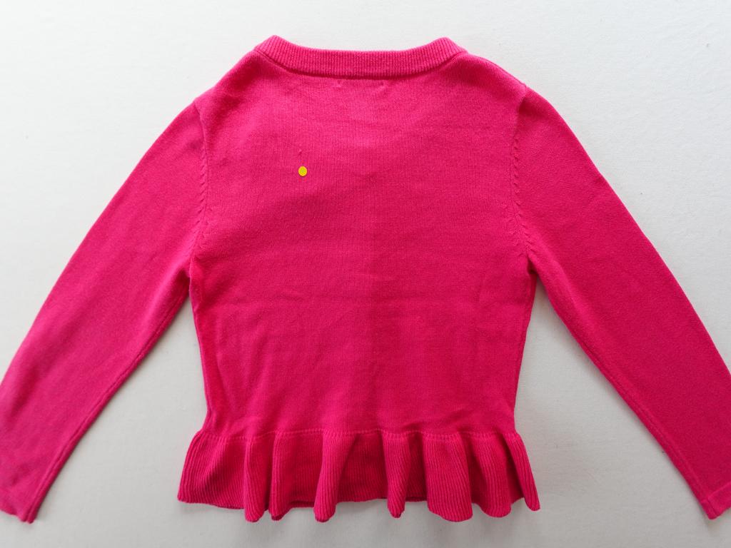 | コメント | 表示サイズ:128/8Y ニット 前ボタン 色あせほんの少々 ピリング少々 後ろに、ほつれ少々 実寸サイズ:身幅37cm/着丈41cm |
