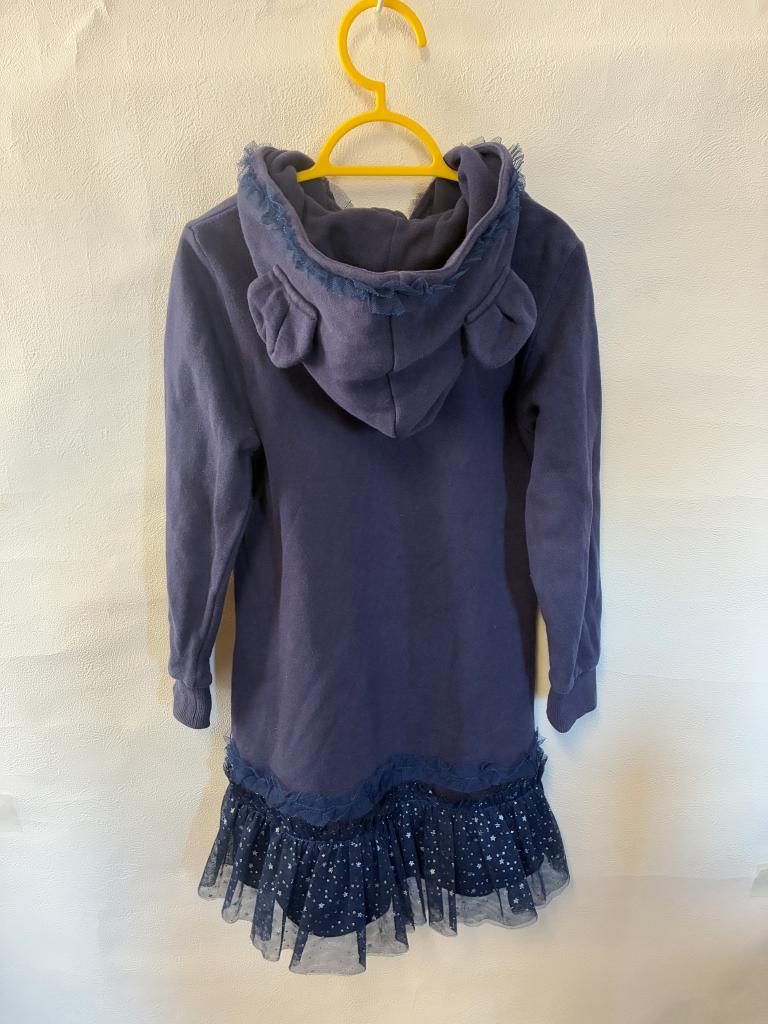 【評価】3 【サイズ】120 【年式】2020年製 【定価】12800円 【実寸】身幅34 着丈63 袖丈42 肩幅30 【材質】綿100%(リブ部分)綿95% ポリウレタン5%(チュール部分)ポリエステル100% 【状態】毛羽立ち・着用感・色褪せ…少々 【色・デザイン】ネイビー 前ポケット フードはボタンで取り外し可能 トレーナー地 |