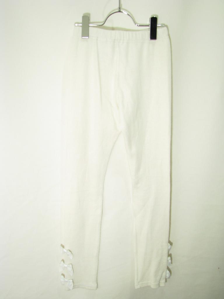 【実寸(cm)】ウェスト50~ 股上23 股下65 【色】白 【デザイン】ウエストゴム リブ 【状態】少々毛羽立ち |