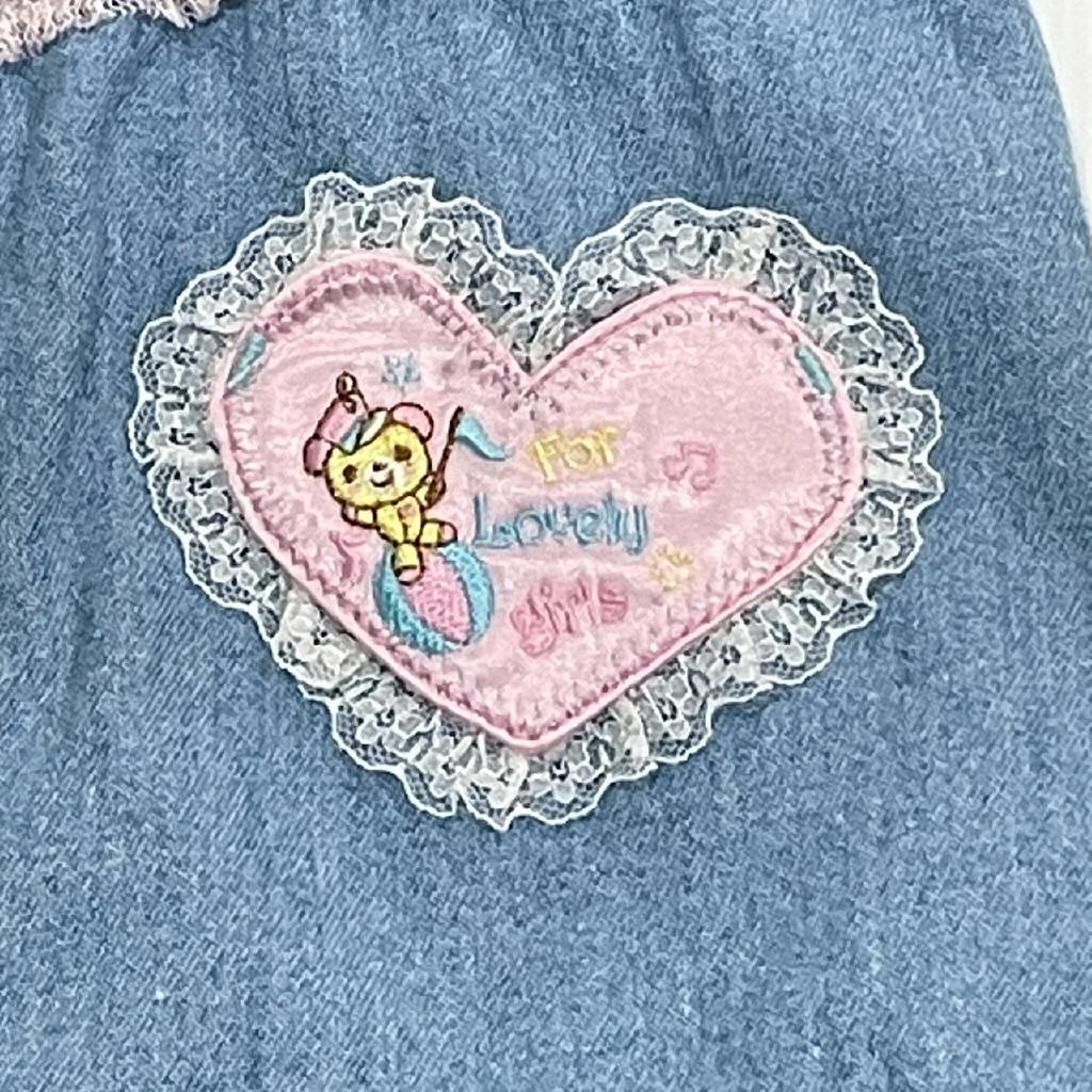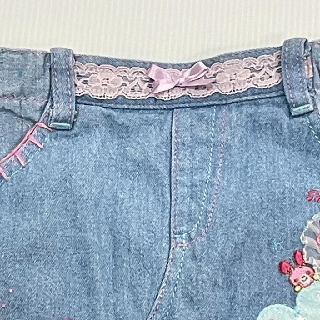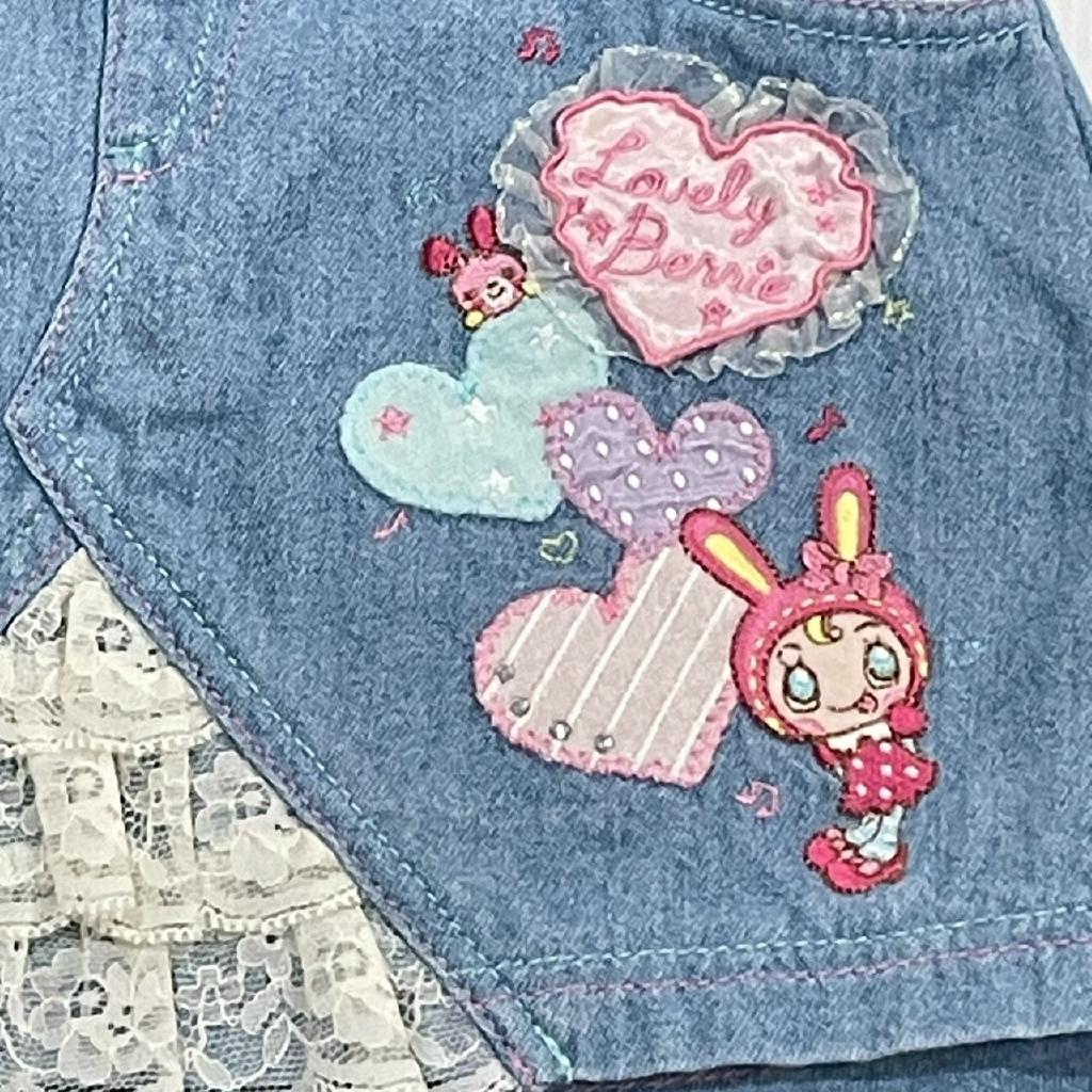 ★希少 レトロ ベリエちゃん★ 【素材】写真参照 【実寸(cm)】W23×2(ゴムアジャスター入り)着丈23 【色・デザイン】ブルー 薄手 左右ポケット 刺繍アップリケ レース リボン付き ロゴプリントストーン付き 【状態】毛羽立ち少々 |
