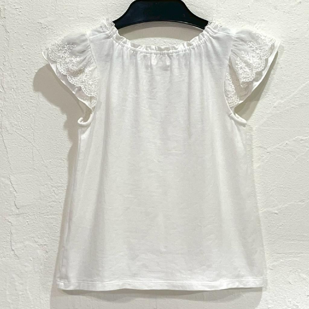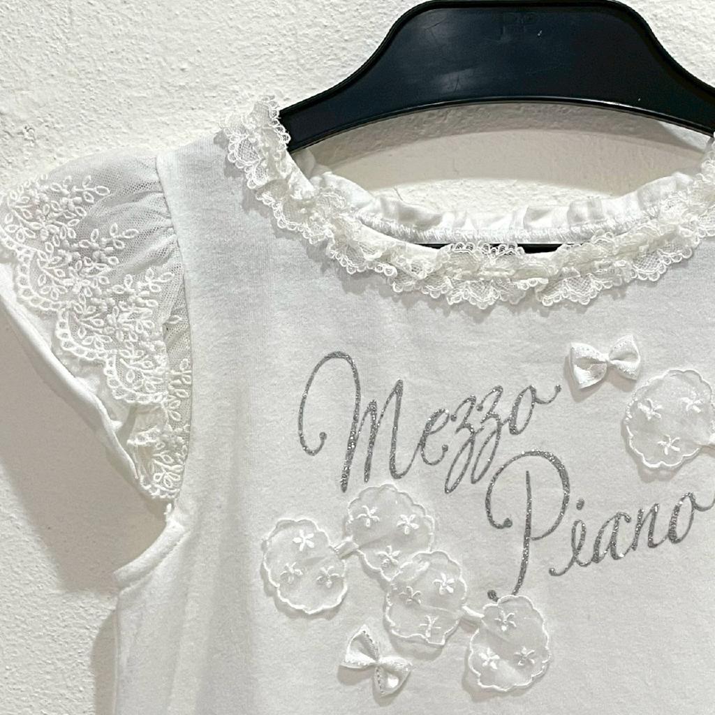 【素材】写真参照 【実寸(cm)】着丈38 身幅30.5 【色・デザイン】白 襟、袖レース付き 襟後ろゴム入り ロゴシルバーラメ リボン付き 【状態】毛羽立ち少し 【定価7.300円+税】 |
