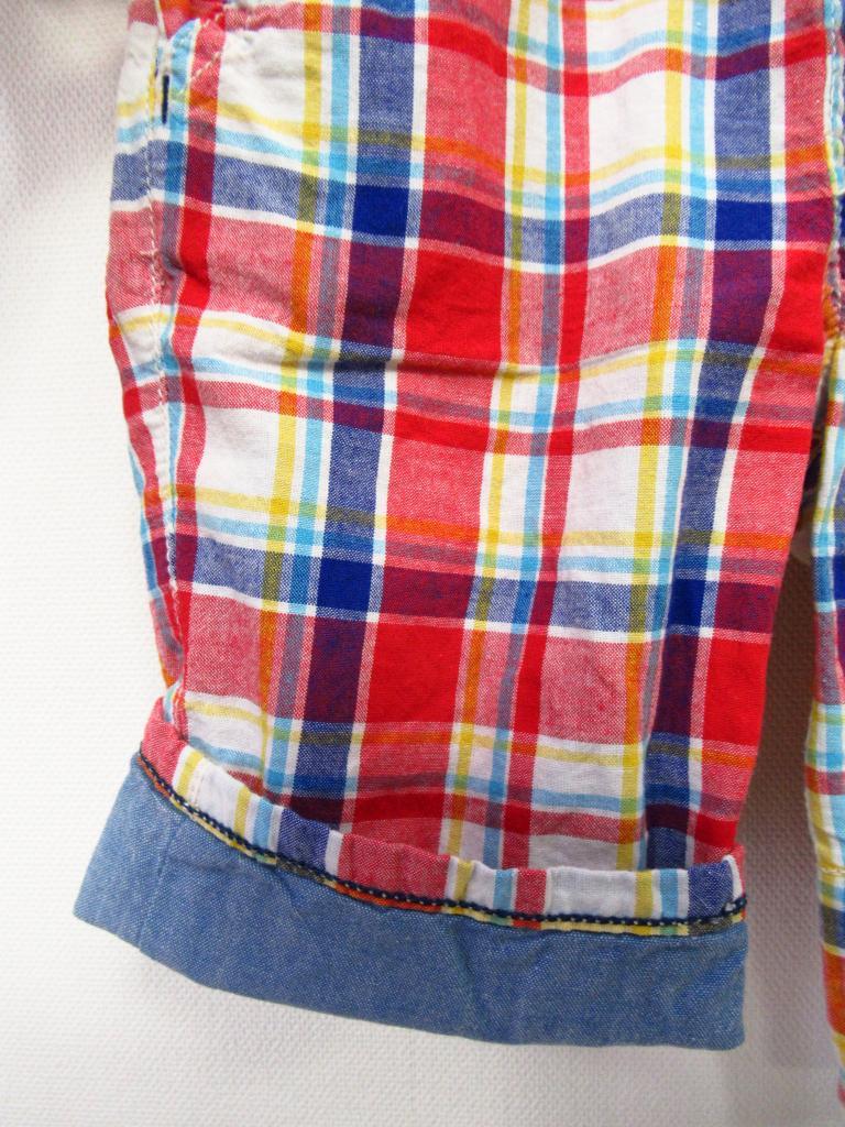 【ゆうパケット可能】 「7分丈パンツ」 【材質】亜麻・苧麻混、裾裏:綿 【実寸サイズ】ウエスト42股上19.5股下17.5太もも幅17.5パンツ丈35 【デザイン】オフホワイト×赤×紺×黄×水色のチェック 前左上アップリケ刺しゅう入り 裾見返し部分薄紺 アジャスター 前左右・右後ポケット 【状態】26518940のTシャツとコーデ可 着用感・色あせ・毛羽立ち少々 定価8,580円(税込) 2021年製 |