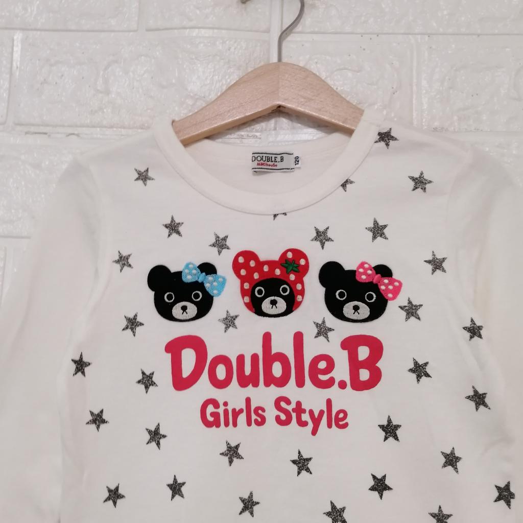 【ミキハウスダブルビー】 『キャラクターワッペン Tシャツ』 ◆[サイズ]=120 ◆[実寸(平置き㎝)]=着丈41 ◆[色]=ホワイト×ブラック ◆[デザイン]=フロント星プリント・ロゴプリント 胸元キャラクターワッペン ◆[状態]=着用感多少 ◆[材質]=6枚目画像参照 |