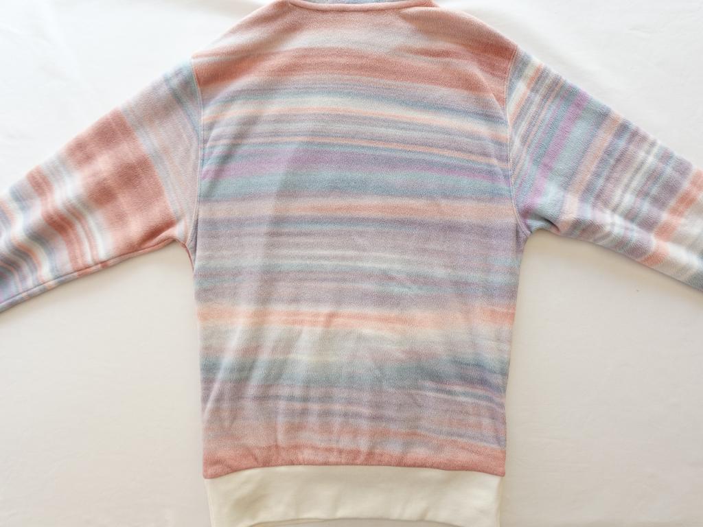 | コメント | 表示サイズ:US S JPN M フリース ボーダー ブランドラベル 前ポケット 色あせ・ピリングほんの少々 実寸サイズ:身幅53cm/着丈67cm |