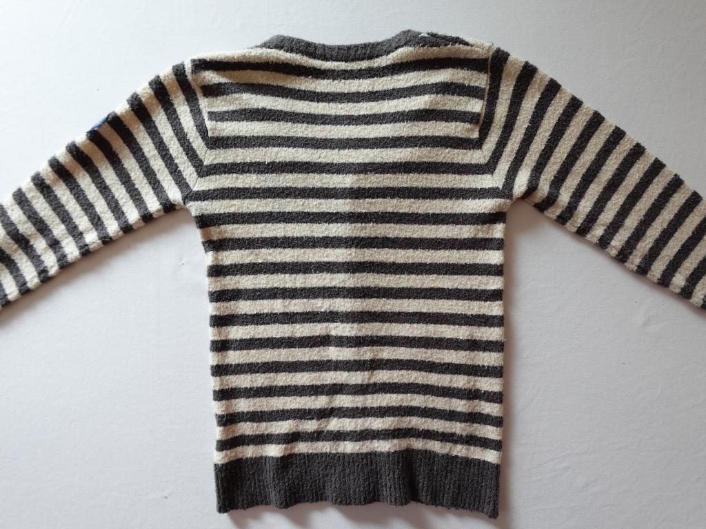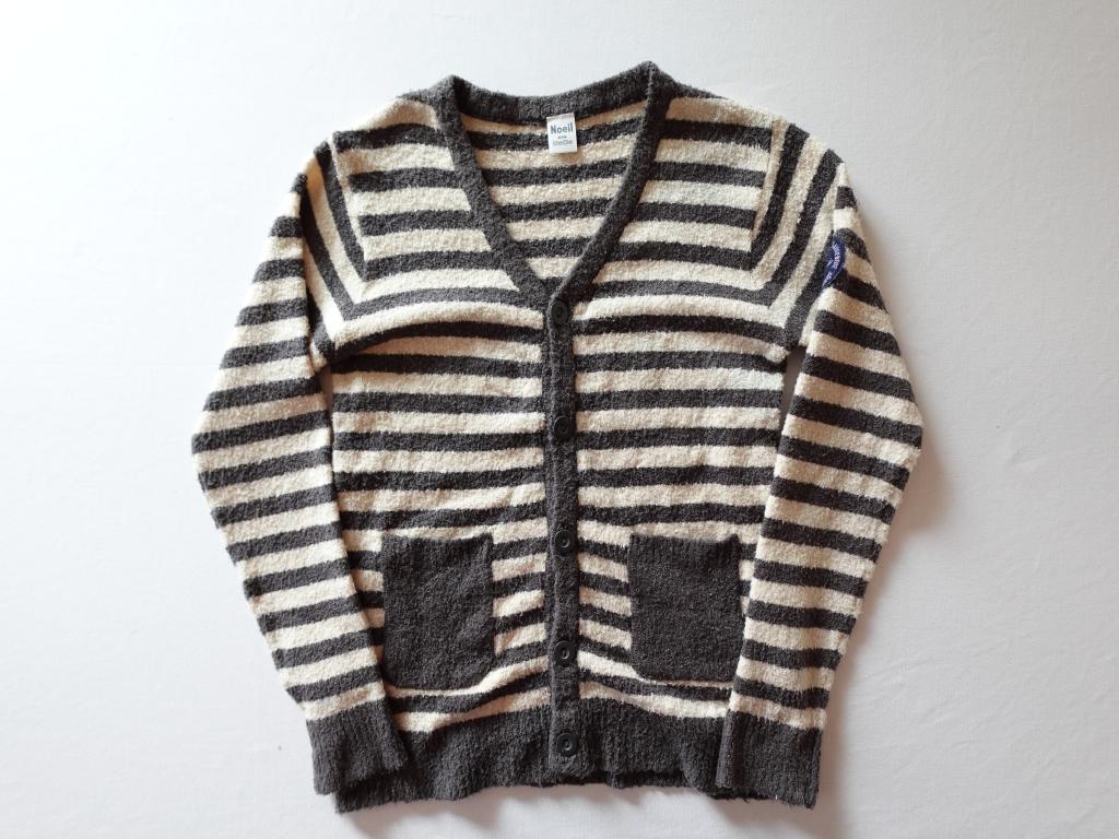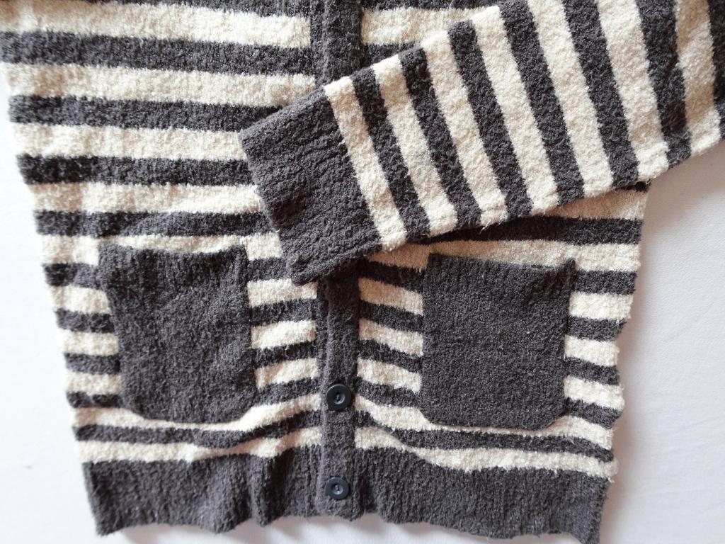 | コメント | アクリル・ナイロン・ポリウレタン ストレッチ ニット ボーダー ロゴの刺しゅう 前ボタン 前ポケット 色あせほんの少々 ピリングやや大 ほつれ多数 実寸サイズ:身幅38cm/着丈50cm |