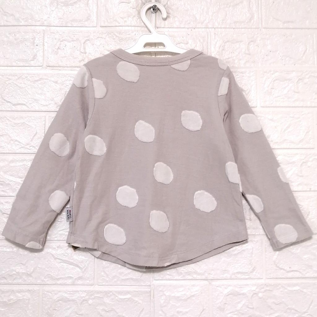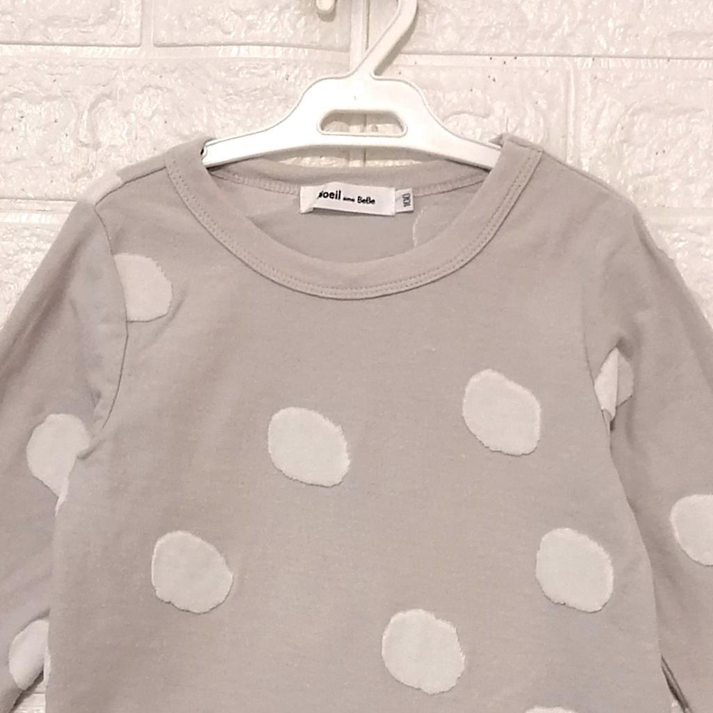 【ノイユエームベベ】 『ドットワッペン カットソー』 ◆[サイズ]=100 ◆[色]=ライトグレー×ホワイト ◆[デザイン]=ドット柄ワッペン 裾ラウンドカット 左サイドは察みタグ ◆[状態]=着用感多少 ◆[材質]=7枚目画像参照 |
