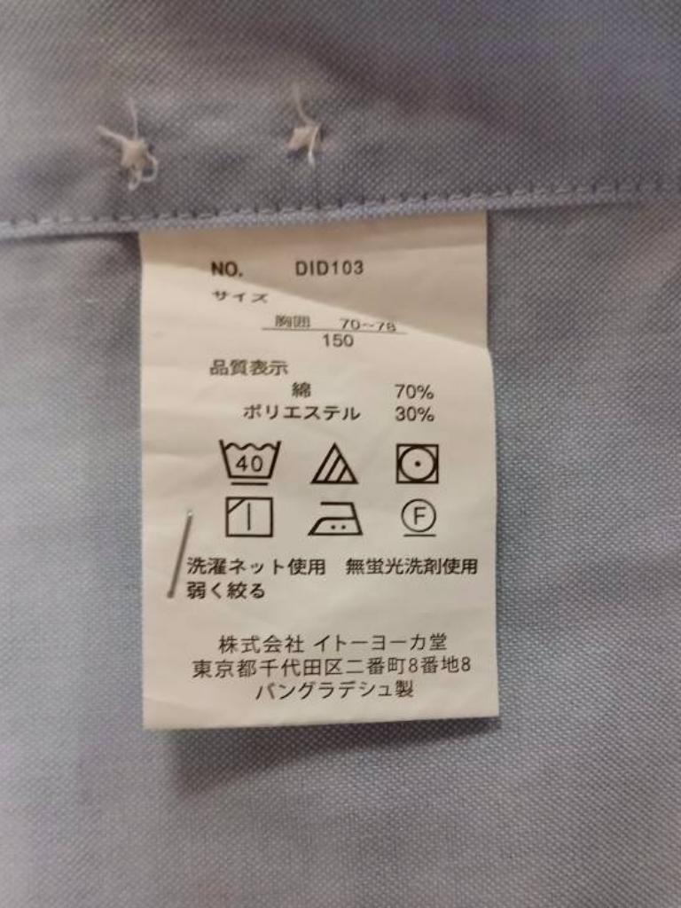 【メーカーサイズ】150 胸囲70~78 【実寸(cm)】身幅45 着丈68 袖丈52 【素材】綿 ポリエステル 【デザイン・色】水色 前・袖ボタン 前ポケット ㈱イトーヨーカ堂 【状態】前薄い汚れ クリーニングタグ付 |
