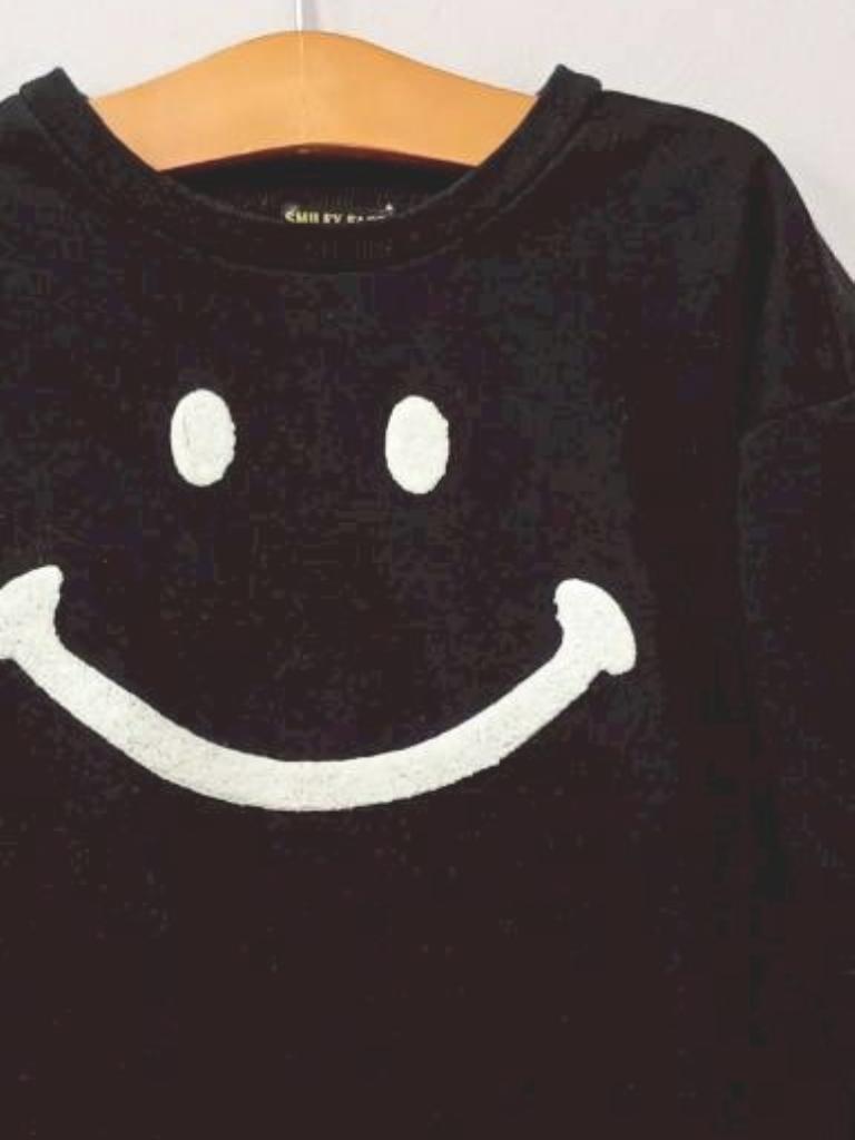 【メーカーサイズ】120 【実寸(cm)】身幅40 着丈44.5 袖丈29 【素材】写真参照 【デザイン・色】黒 トレーナー地 スマイル 【状態】少々毛羽立ち #おすすめ #2292920 |