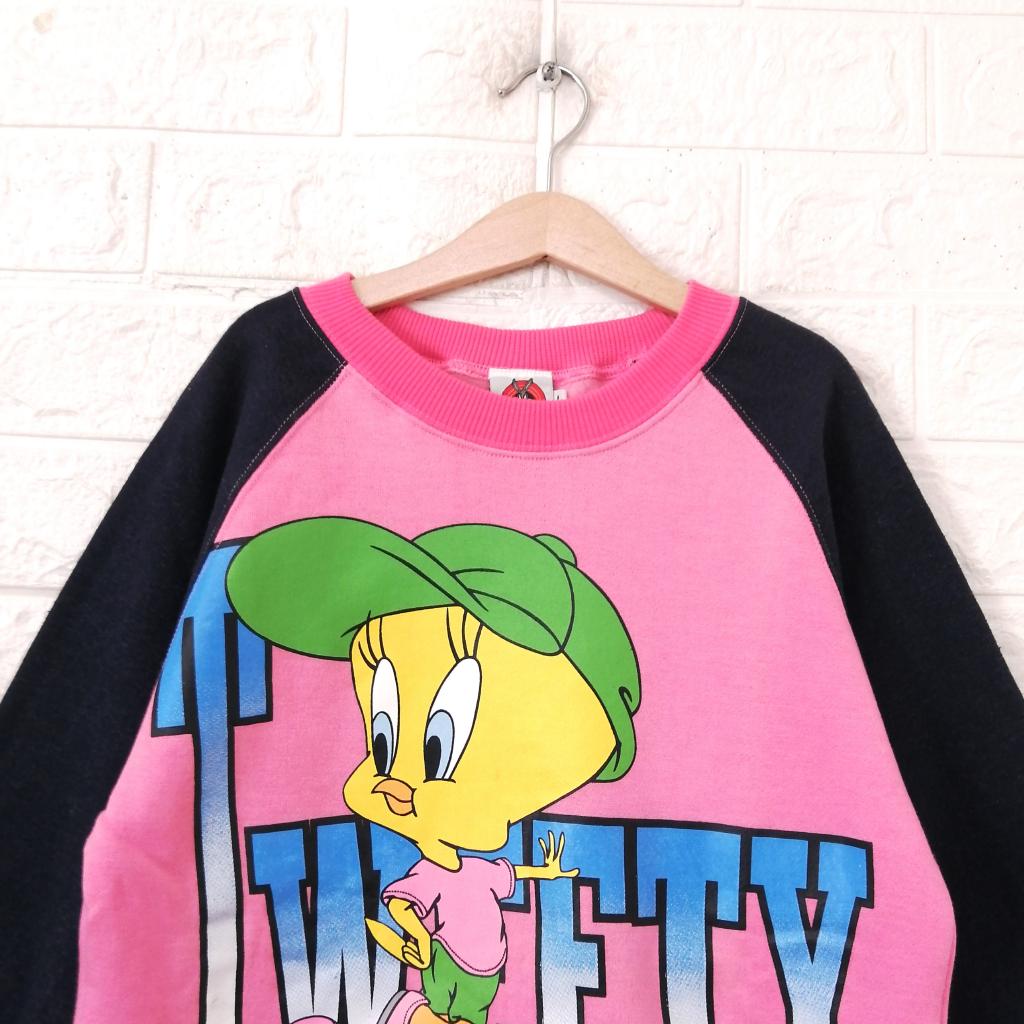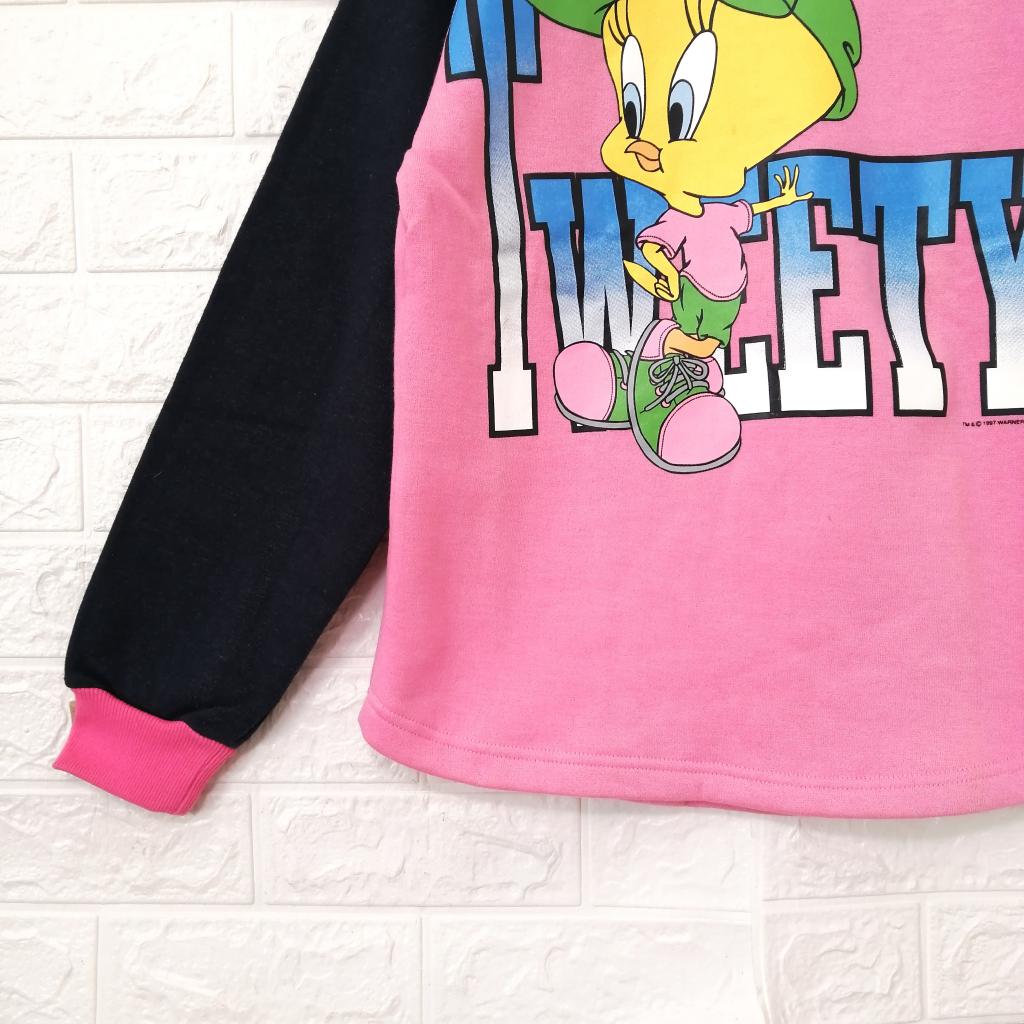 【ルーニーチューンズ】 『トゥイーティー プリント 裏起毛 トレーナー』 ◆[サイズ]=160 ◆[色]=ピンク×ネイビー ◆[デザイン]=フロントトゥイーティープリント 裏起毛 ◆[状態]=新品タグ付きのお品です ◆[材質]=6枚目画像参照 |