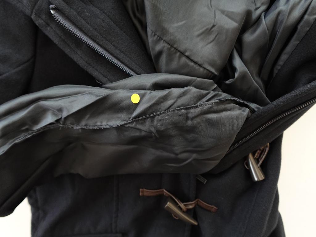 | コメント | 表地・裏地:ポリエステル ループ部分:合成皮革 ロゴの刺しゅう 前ファスナー・トグル・ボタン 前ポケット ピリングほんの少々 左袖に、傷やや大 左袖裏地に、ステッチ脱落を縫った跡23cm 実寸サイズ:身幅46cm/着丈72cm |